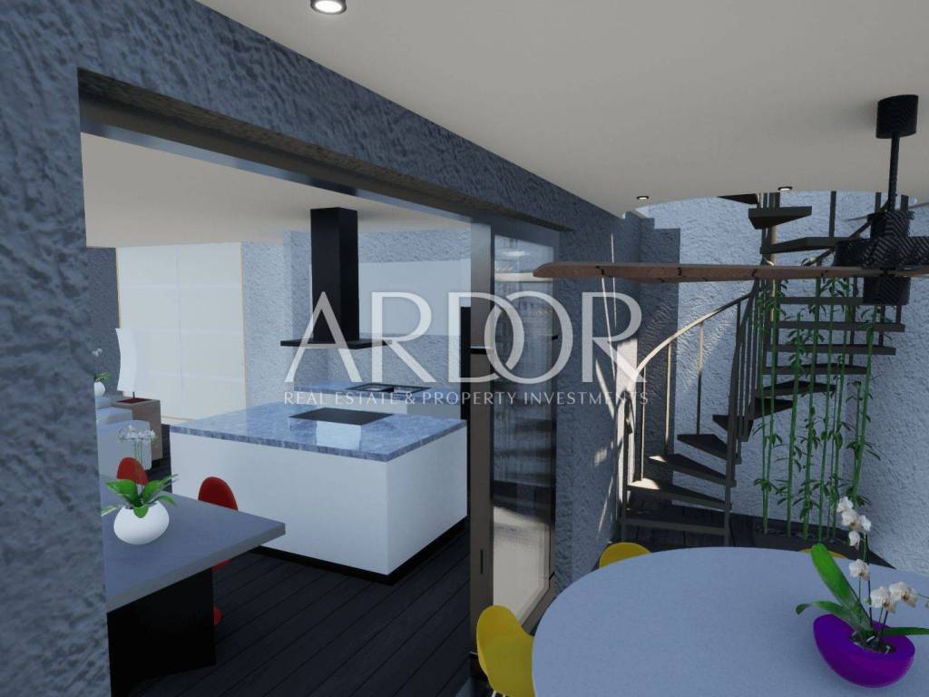 Rijeka – Luxuswohnung im zweiten Stock eines Neubaus mit 98,37 m2 Wohnfläche und einer überdachten Terrasse mit beheiztem Swimmingpool von 65,15 m2 und einer beeindruckenden Dachterrasse von 79,96 m2 mit einem unvergesslichen Blick auf die gesamte Kvarner Bucht.