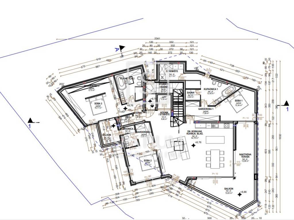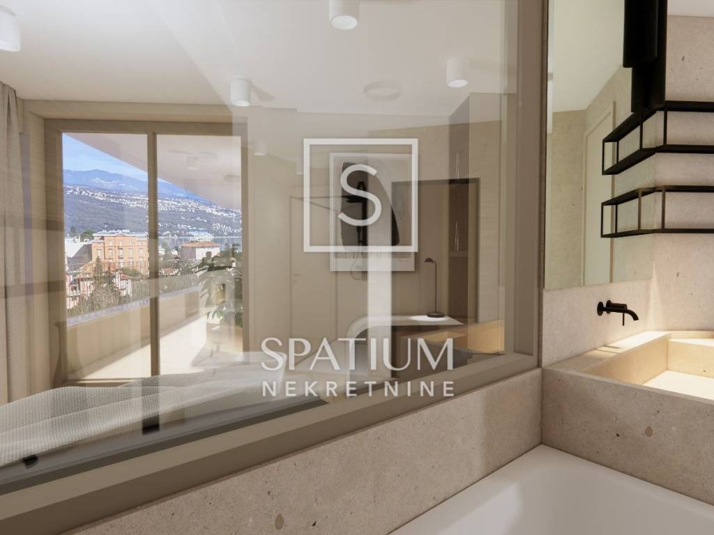 OPATIJA, CENTAR, im Angebot haben wir ein hochwertiges Penthouse in einem Neubau erhalten. Die Wohnung besteht aus einer Eingangshalle, einem geräumigen Wohnzimmer mit Küche und Esszimmer, dem Hauptschlafzimmer mit eigenem Bad, Sauna, Garderobe und Abstellraum, zwei weiteren Schlafzimmern jeweils mit eigenem Bad und Garderobe, einem Gäste-WC, einer überdachten Terrasse von 13,06 m2, ein Balkon von 15,63 m2, ein kleinerer Balkon von 4,87 m2 und eine große Dachterrasse von 115,03 m2 und ein privater Pool von 15 m2. Das alles zusammen ergibt eine Fläche von 334,82m2. Der Aufzug führt von der Garage zur Wohnung. Es verfügt über 3 Garagenstellplätze und einen Abstellraum. Beim Bau dieses Gebäudes werden erstklassige Materialien verwendet. -Heizung/Kühlung, Fußbodenheizung + Wärmepumpe -Top-Sanitärkeramik -Top-ALU-Zimmerei -Einbruchtüren -Alarmanlage -Video -Aufzug von der Garage zur Wohnung -Dachterrasse -privater Pool Das Gebäude liegt unter Nova Cesta, nur 150 m von entfernt das Meer, in der Nähe aller lebensnotwendigen Einrichtungen. OPATIJA, eine wunderschöne Küstenstadt an der Adria und berühmter Kurort des 19. Jahrhunderts, ist ein beliebtes Reiseziel für Touristen aus aller Welt. Die Stadt ist von einzigartigen Naturschönheiten umgeben. Es liegt unterhalb des Berges Učka, der ein beliebtes Ziel für Bergsteiger und Wanderer ist. Es liegt am Übergang zwischen der grünen Region Istriens und der Küste und bildet ein perfektes Gleichgewicht der Landschaft. Die Stadt bietet einen wunderschönen Blick auf das Meer und die nahegelegenen Inseln Krk und Cres. Es ist umgeben von charmanten historischen Städten mit engen Gassen und einer reichen Geschichte. Opatija ist mit einer Vielzahl ungewöhnlicher Sehenswürdigkeiten, zahlreichen Stränden und klarem Meer geschmückt und die Straßen der Stadt sind übersät mit Häusern interessanter Architektur und Villen aus der Habsburgerzeit. Für weitere Informationen wenden Sie sich vertrauensvoll an einen Agenten. Leo Cerniar lizenzierter Vertreter +385 95 901 4093 leo@spatium.hr Sanjin Latinčić lizenzierter Vertreter +385912899599 sanjin@spatium.hr Spatium nekretnine +385 51 272 903 info@spatium.hr