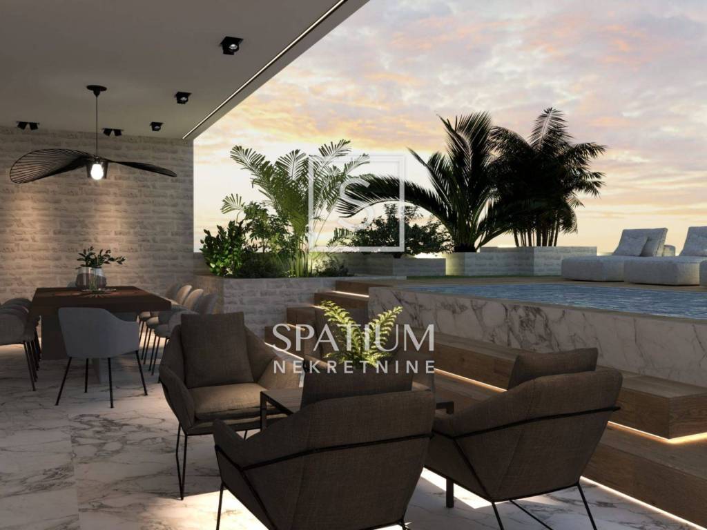 VOLOSKO bieten wir eine exklusive zweistöckige Wohnung mit einer Gesamtfläche von 169,7 m2 und Panoramablick auf das Meer an. Die Wohnung erstreckt sich über zwei Etagen. Im ersten Stock (Erdgeschoss) befinden sich drei Schlafzimmer, ein Gäste-WC, zwei Badezimmer, ein Flur, eine Waschküche und ein „Open Space“-Wohnzimmer mit Küche und ein Esszimmer mit Zugang zu einer überdachten Terrasse. Im ersten Stock gibt es einen Weinkeller, zwei Toiletten, ein zusätzliches Wohnzimmer und eine weitere überdachte Terrasse. Dieser moderne Neubau zeichnet sich durch eine hervorragende Raumaufteilung und hochwertige Bauweise (ALU-Zimmerei, Wärmepumpen, erstklassige Bodenbeläge, Videoüberwachung...) aus. Den Mietern steht außerdem ein gemeinsamer Fitnessraum mit Spa-Bereich zur Verfügung. Zur Wohnung gehören zwei Garagenstellplätze. In dieser Bauphase besteht die Möglichkeit, den Innenraum nach Ihren eigenen Wünschen anzupassen. Die Fertigstellung der Arbeiten ist für Ende 2025 geplant. Für alle weiteren Informationen wenden Sie sich bitte vertrauensvoll an uns. Sanjin Latinčić +385912899599 sanjin@spatium.hr Spatium nekretnine +38551272903 info@spatium.hr