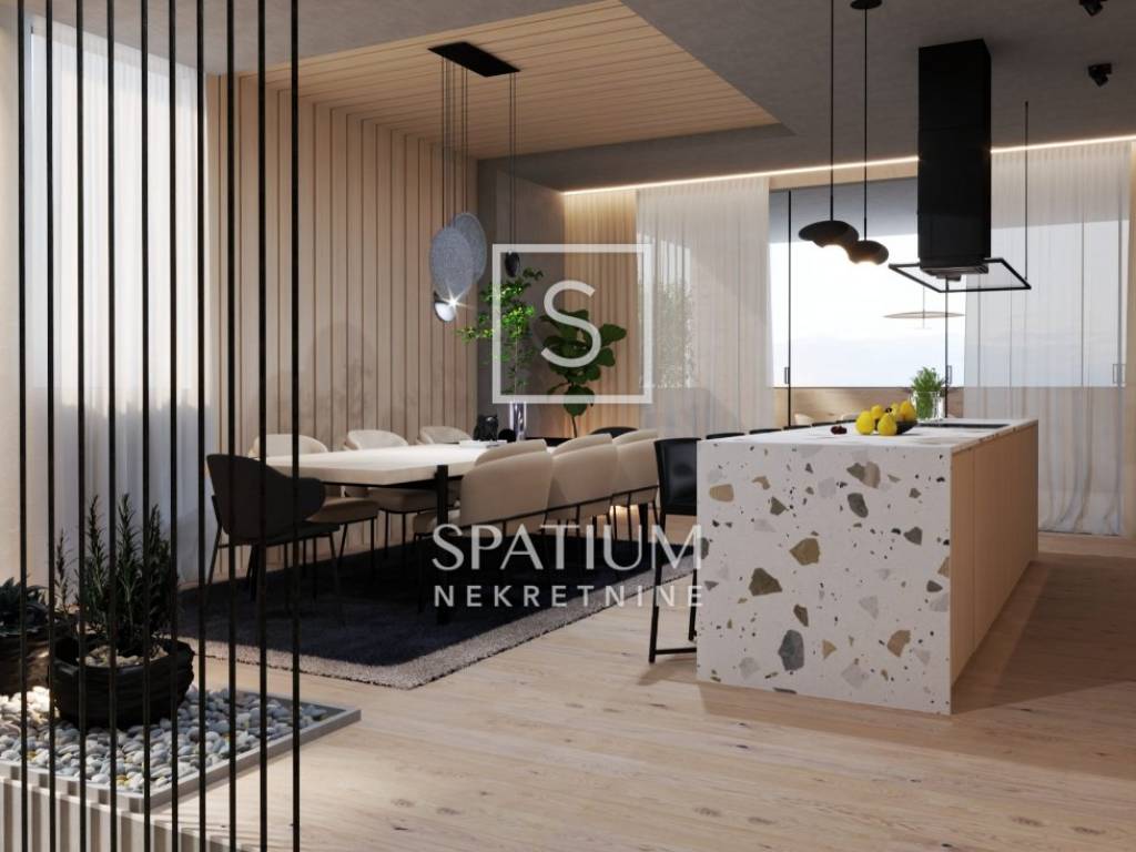 VOLOSKO bieten wir eine exklusive zweistöckige Wohnung mit einer Gesamtfläche von 173,00 m2 mit Panoramablick auf das Meer an. Die Wohnung erstreckt sich über zwei Etagen. Im ersten Stock (Erdgeschoss) befinden sich drei Schlafzimmer, ein Gäste-WC, zwei Badezimmer, ein Flur, eine Waschküche und ein „Open Space“-Wohnzimmer mit Küche und ein Esszimmer mit Zugang zu einer überdachten Terrasse. Im ersten Stock gibt es einen Weinkeller, zwei Toiletten, ein zusätzliches Wohnzimmer und eine weitere überdachte Terrasse. Dieser moderne Neubau zeichnet sich durch eine hervorragende Raumaufteilung und hochwertige Bauweise (ALU-Zimmerei, Wärmepumpen, erstklassige Bodenbeläge, Videoüberwachung...) aus. Den Mietern steht ein gemeinsamer Fitnessraum mit Spa-Bereich zur Verfügung. Zur Wohnung gehören drei Parkplätze in der Garage. In dieser Bauphase besteht die Möglichkeit, den Innenraum nach Ihren eigenen Wünschen anzupassen. Die Fertigstellung der Arbeiten ist für Ende 2025 geplant. OPATIJA, eine wunderschöne Küstenstadt an der Adria und berühmter Kurort des 19. Jahrhunderts, ist ein beliebtes Reiseziel für Touristen aus aller Welt. Die Stadt ist von einzigartigen Naturschönheiten umgeben. Es liegt unterhalb des Učka-Gebirges, das ein beliebtes Ziel für Bergsteiger und Wanderer ist. Es liegt am Übergang zwischen der grünen Region Istriens und der Küste und bildet eine perfekte Balance der Landschaft. Die Stadt bietet einen wunderschönen Blick auf das Meer und die nahegelegenen Inseln Krk und Cres. Es ist umgeben von charmanten historischen Städten mit engen Gassen und einer reichen Geschichte. Opatija ist mit einer Vielzahl ungewöhnlicher Sehenswürdigkeiten, zahlreichen Stränden und klarem Meer geschmückt und die Straßen der Stadt sind übersät mit Häusern interessanter Architektur und Villen aus der Habsburgerzeit. Für alle weiteren Informationen wenden Sie sich bitte vertrauensvoll an uns. Sanjin Latinčić +385912899599 sanjin@spatium.hr Spatium nekretnine +38551272903 info@spatium.hr