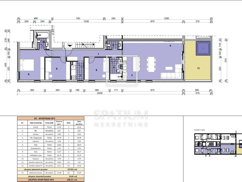 VOLOSKO bieten wir eine exklusive Wohnung mit einer Gesamtfläche von 148,51 m2 mit Panoramablick auf das Meer an. Es befindet sich im zweiten Stock und besteht aus drei Schlafzimmern, einem Gäste-WC, zwei Badezimmern, einem Flur und einem „Open Space“-Wohnzimmer mit Küche und Esszimmer mit Zugang zu einer überdachten Terrasse, auf der sich ein Whirlpool für sechs Personen befindet. Dieser moderne Neubau zeichnet sich durch eine hervorragende Raumaufteilung und hochwertige Bauweise (ALU-Zimmerei, Wärmepumpen, erstklassige Bodenbeläge, Videoüberwachung...) aus. Den Mietern steht ein gemeinsamer Fitnessraum mit Spa-Bereich zur Verfügung. Zur Wohnung gehören zwei Parkplätze in der Garage. In dieser Bauphase besteht die Möglichkeit, den Innenraum nach Ihren eigenen Wünschen anzupassen. Die Fertigstellung der Arbeiten ist für Ende 2025 geplant. OPATIJA, eine wunderschöne Küstenstadt an der Adria und berühmter Kurort des 19. Jahrhunderts, ist ein beliebtes Reiseziel für Touristen aus aller Welt. Die Stadt ist von einzigartigen Naturschönheiten umgeben. Es liegt unterhalb des Učka-Gebirges, das ein beliebtes Ziel für Bergsteiger und Wanderer ist. Es liegt am Übergang zwischen der grünen Region Istriens und der Küste und bildet eine perfekte Balance der Landschaft. Die Stadt bietet einen wunderschönen Blick auf das Meer und die nahegelegenen Inseln Krk und Cres. Es ist umgeben von charmanten historischen Städten mit engen Gassen und einer reichen Geschichte. Opatija ist mit einer Vielzahl ungewöhnlicher Sehenswürdigkeiten, zahlreichen Stränden und klarem Meer geschmückt und die Straßen der Stadt sind übersät mit Häusern interessanter Architektur und Villen aus der Habsburgerzeit. Für alle weiteren Informationen wenden Sie sich bitte vertrauensvoll an uns. Sanjin Latinčić +385912899599 sanjin@spatium.hr Spatium nekretnine +38551272903 info@spatium.hr