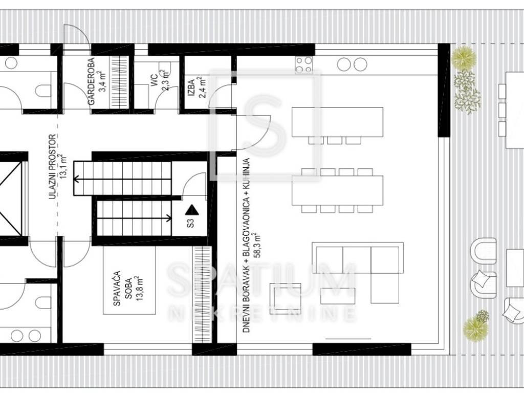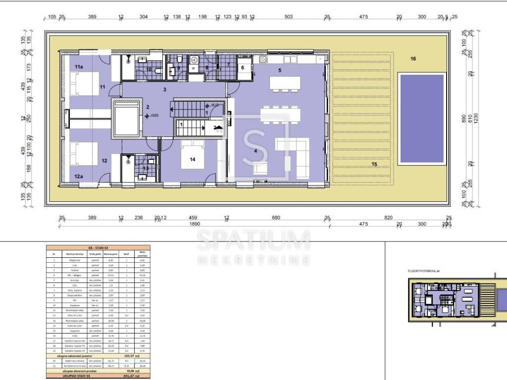 VOLOSKO, wir haben ein exklusives Penthouse mit einer Gesamtfläche von 201,47m2 mit Panoramablick auf das Meer. Es befindet sich im dritten Stock, der direkt mit einem Aufzug erreichbar ist, und besteht aus drei Schlafzimmern, einem Gäste-WC, einem Zimmer, einer Garderobe, zwei Badezimmern, einem Flur und einem „Open Space“-Wohnzimmer mit Küche und ein Esszimmer mit Zugang zu einer 140 m² großen Terrasse, auf der sich ein beheizter Pool mit Panoramablick auf die Kvarner-Bucht befindet. Dieser moderne Neubau zeichnet sich durch eine hervorragende Raumaufteilung und hochwertige Bauweise (ALU-Zimmerei, Wärmepumpen, erstklassige Bodenbeläge, Videoüberwachung...) aus. Den Mietern steht ein gemeinsamer Fitnessraum mit Spa-Bereich zur Verfügung. Zur Wohnung gehören drei Parkplätze in der Garage. In dieser Bauphase besteht die Möglichkeit, den Innenraum nach Ihren eigenen Wünschen anzupassen. Die Fertigstellung der Arbeiten ist für Ende 2025 geplant. OPATIJA, eine wunderschöne Küstenstadt an der Adria und berühmter Kurort des 19. Jahrhunderts, ist ein beliebtes Reiseziel für Touristen aus aller Welt. Die Stadt ist von einzigartigen Naturschönheiten umgeben. Es liegt unterhalb des Učka-Gebirges, das ein beliebtes Ziel für Bergsteiger und Wanderer ist. Es liegt am Übergang zwischen der grünen Region Istriens und der Küste und bildet eine perfekte Balance der Landschaft. Die Stadt bietet einen wunderschönen Blick auf das Meer und die nahegelegenen Inseln Krk und Cres. Es ist umgeben von charmanten historischen Städten mit engen Gassen und einer reichen Geschichte. Opatija ist mit einer Vielzahl ungewöhnlicher Sehenswürdigkeiten, zahlreichen Stränden und klarem Meer geschmückt und die Straßen der Stadt sind übersät mit Häusern interessanter Architektur und Villen aus der Habsburgerzeit. Für alle weiteren Informationen wenden Sie sich bitte vertrauensvoll an uns. Sanjin Latinčić +385912899599 sanjin@spatium.hr Spatium nekretnine +38551272903 info@spatium.hr