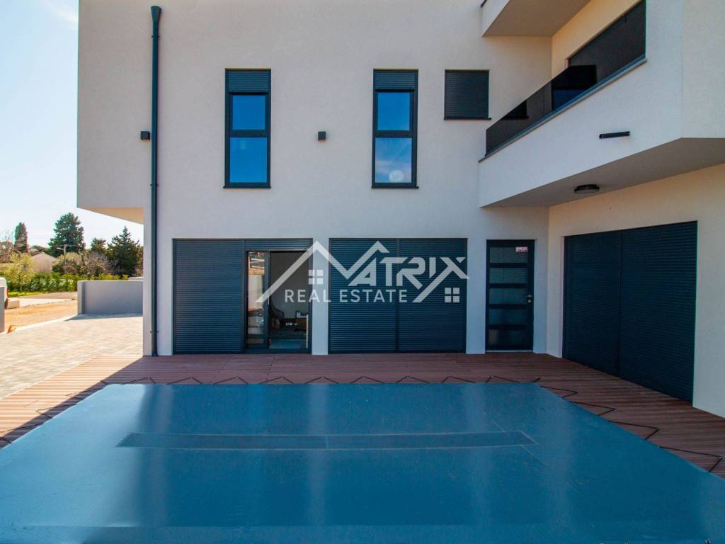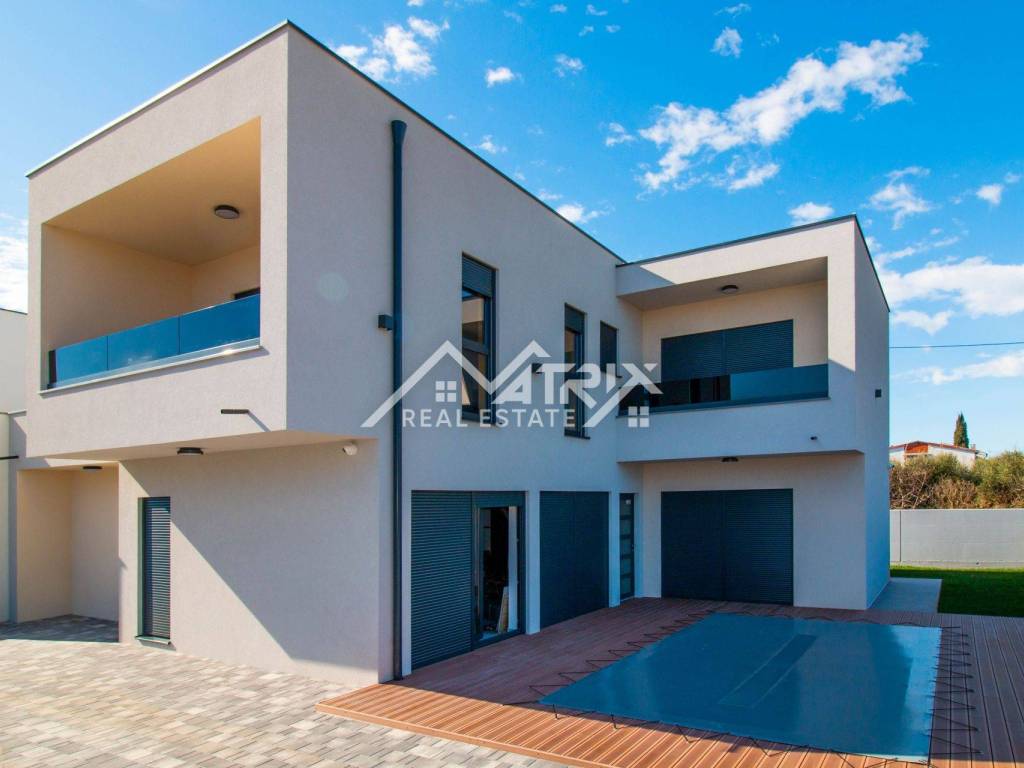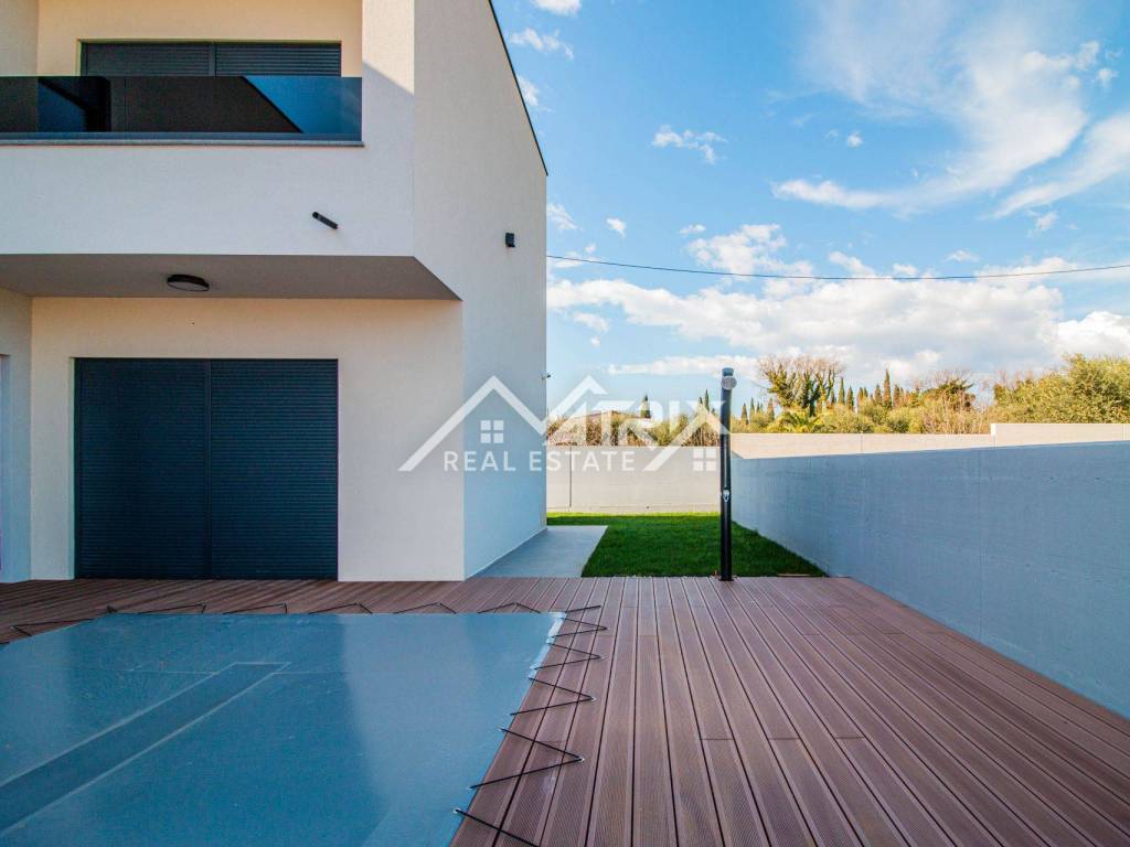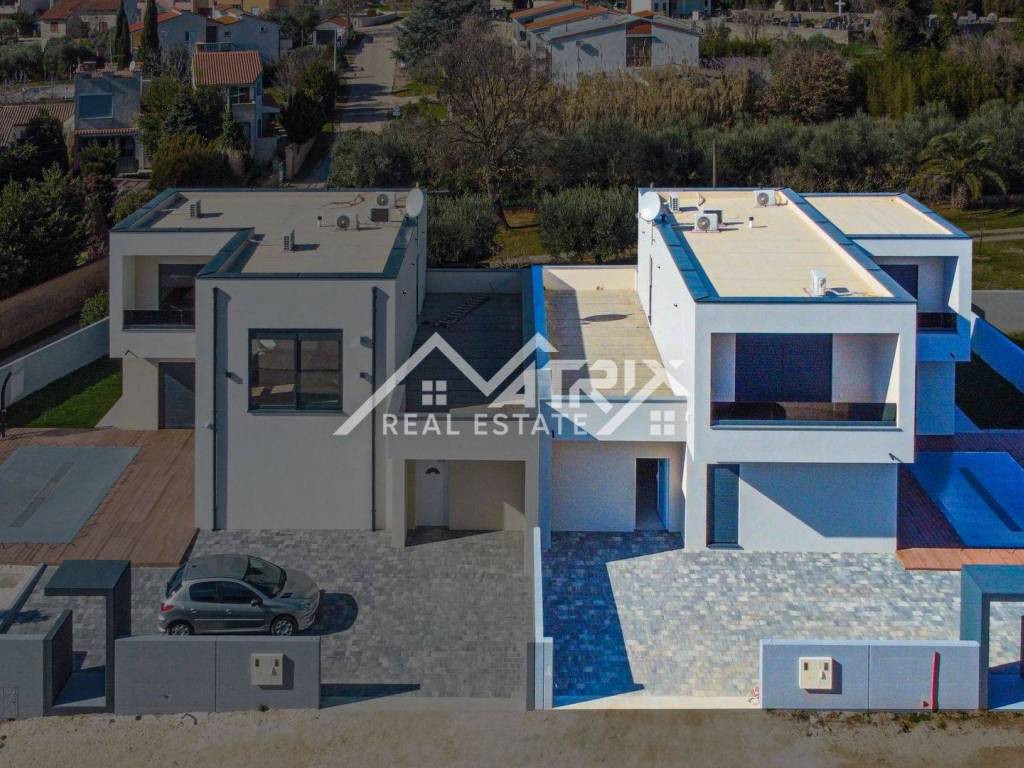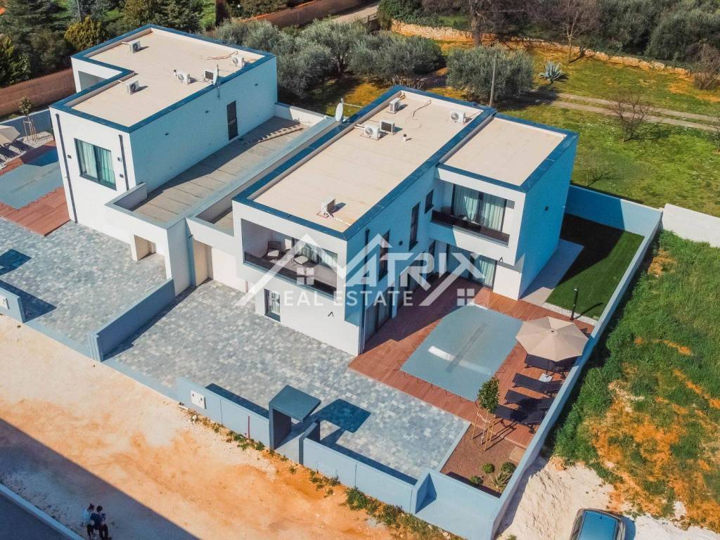 In einer ruhigen Siedlung in der Nähe von Medulin, nur 200 Meter vom Yachthafen zum Anlegen von Booten entfernt, befindet sich diese moderne Doppelhaushälfte mit Swimmingpool. Das Haus erstreckt sich über zwei Etagen: Erdgeschoss und erste Etage, mit einer Gesamtwohnfläche von 200 m2, mit drei Schlafzimmern. Das Haus wird komplett möbliert und mit Luxusmöbeln und hochwertiger Ausstattung ausgestattet verkauft.