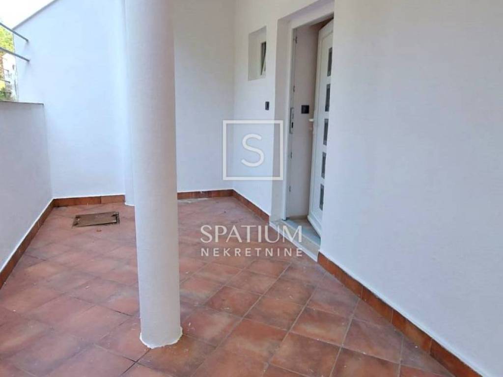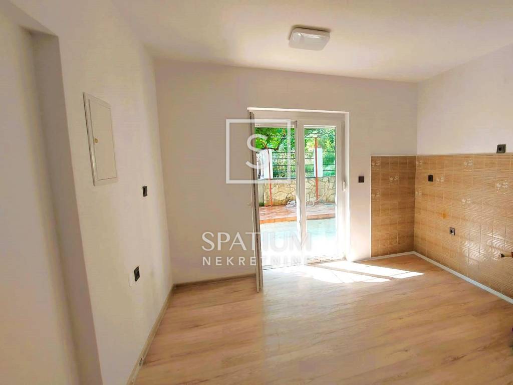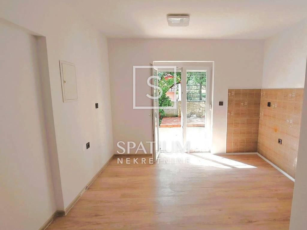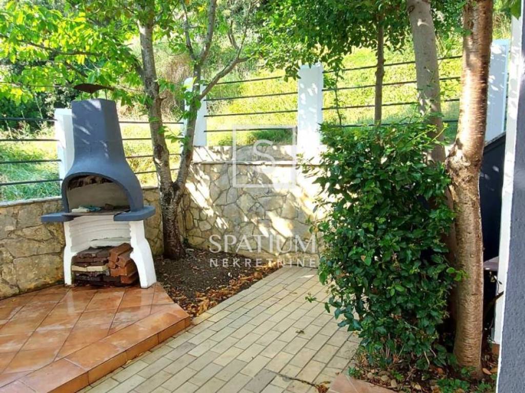 RAB ISLAND, KAMPOR, wir haben ein Angebot für eine Wohnung im Hochparterre des Hauses, bestehend aus einem Flur, einem Badezimmer, zwei Zimmern, von denen eines Zugang zu einem Balkon mit teilweisem Meerblick hat, und eine Küche mit Esszimmer, die Zugang zu einer schönen Terrasse hat, auf der Weinreben natürlichen Schatten spenden und einen perfekten Ort für Nachmittagsruhe und abendliche Zusammenkünfte mit Grillabenden schaffen. Die Wohnung liegt nur wenige Autominuten von Suha Punta entfernt, wo es zahlreiche Promenaden und versteckte Buchten sowie den wunderschönen Kalifront-Wald gibt, eines der schönsten Naturschutzgebiete der Insel, ideal zum Wandern, Laufen oder Radfahren