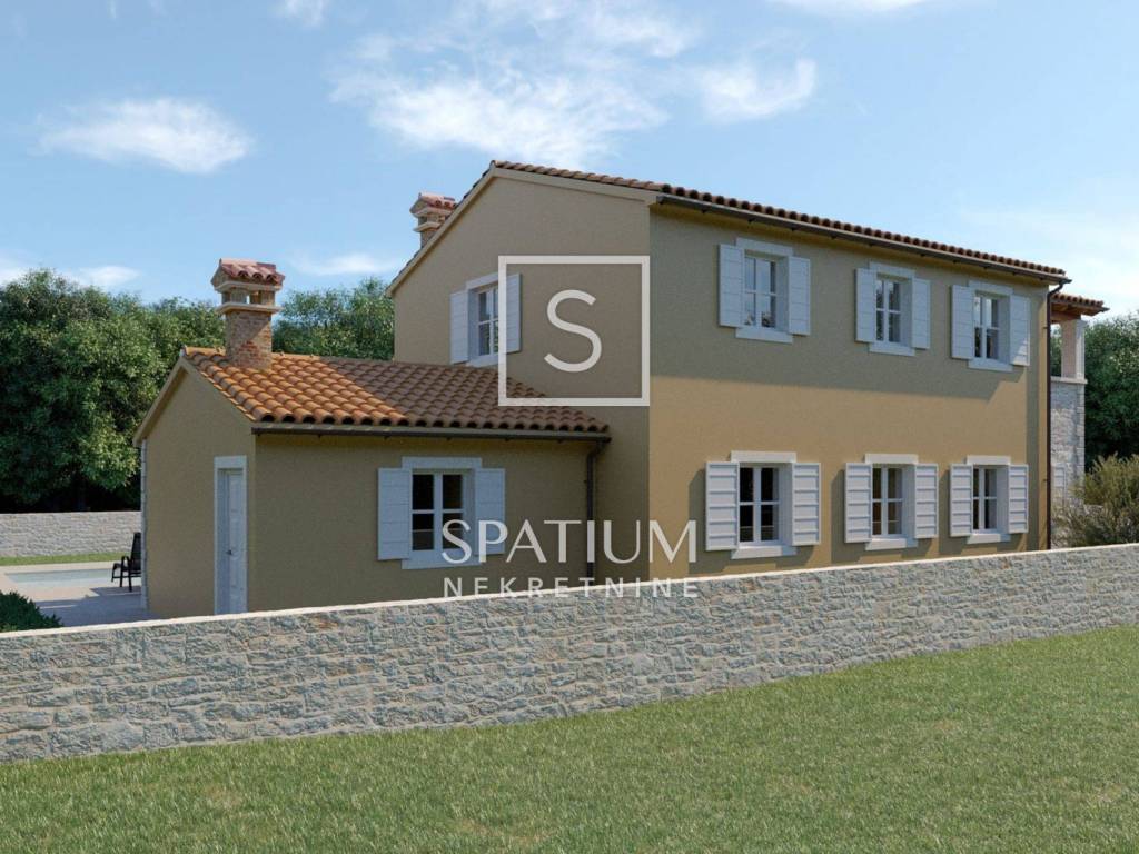 KAŠTELIR –Zum Verkauf steht eine exklusive Neubau-Villa im traditionellen istrischen Baustil, die modernen Luxus und authentischen Charme vereint. Diese luxuriöse Villa, umgeben von einem alten Olivenhain mit majestätischen Olivenbäumen, befindet sich in einer der gefragtesten Lagen Istriens und bietet einen atemberaubenden Meerblick von der oberen überdachten Terrasse. Genießen Sie den großen beheizten Pool, der von hochwertigem Kanfanar-Naturstein umgeben ist, sowie eine einladende überdachte Außenküche, perfekt für entspannte Sommerabende.