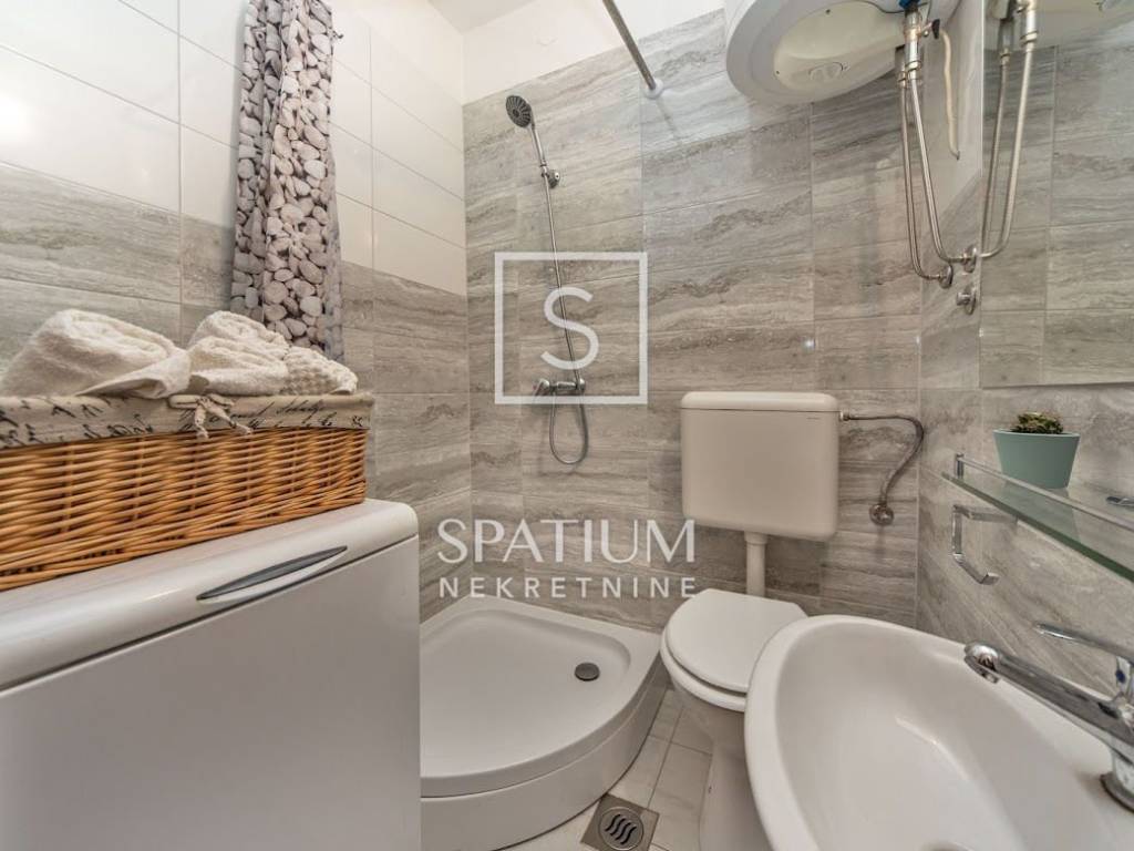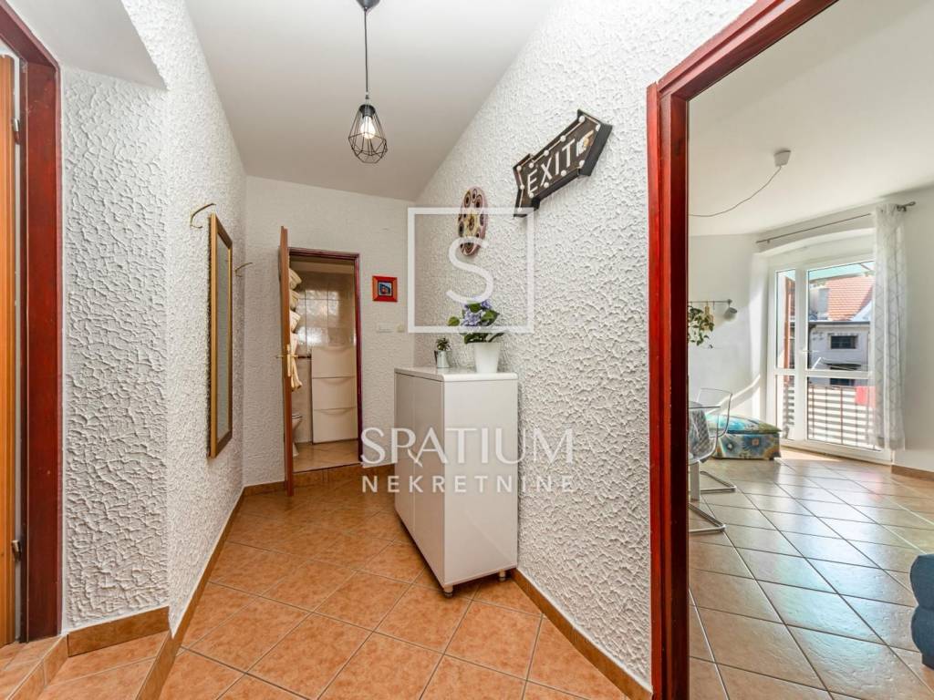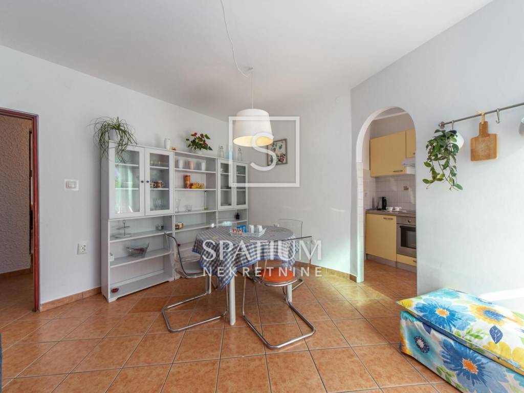 SUŠAK, wir bieten eine 89,06 m² große Wohnung an, die in zwei Wohneinheiten aufgeteilt ist. Über die Treppe gelangt man direkt in das Studio oder in eine geräumige, klassische Zweizimmerwohnung mit Balkon. Die helle und sonnige Wohnung eignet sich ebenfalls hervorragend zum Wohnen. Die Wohnungen sind komplett möbliert und ausgestattet und bieten aufgrund ihrer Lage in unmittelbarer Nähe des Korzo sowie des bereits etablierten Geschäfts eine ausgezeichnete Investitionsmöglichkeit für touristische Zwecke oder zur langfristigen Vermietung.