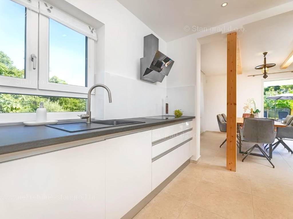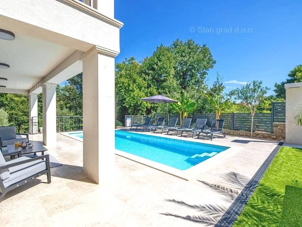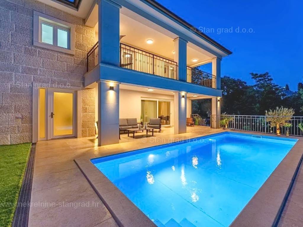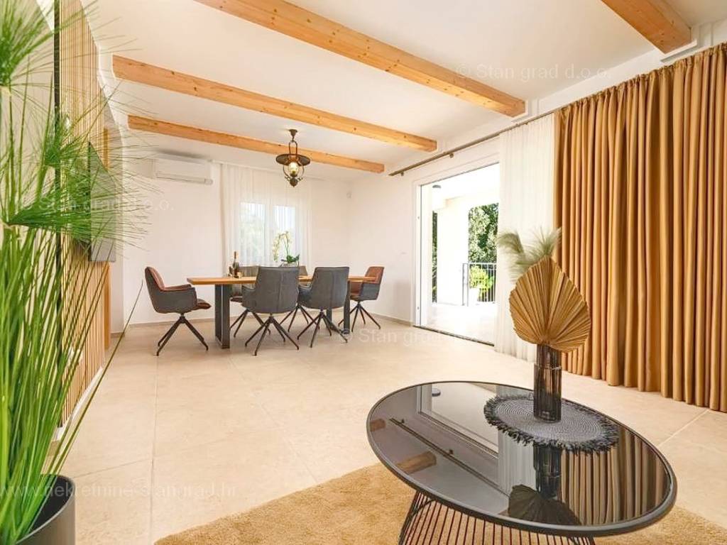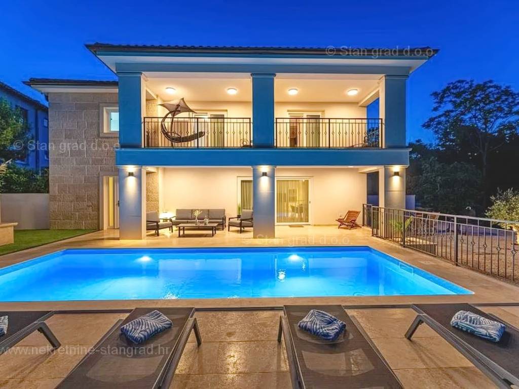 In der Immobilienangebot der Agentur Stan Grad Immobilien wird eine designerisch gestaltete und modern gebaute Touristenvilla in der nördlichen Adriatischen Mittelmeerregion auf der Insel Krk zum Verkauf angeboten. Diese attraktive Immobilie befindet sich an einem hervorragenden Standort, nahe dem Zentrum des bekannten Touristenortes Stadt Krk. Strukturmäßig handelt es sich um ein freistehendes Einfamilienhaus auf zwei Etagen.