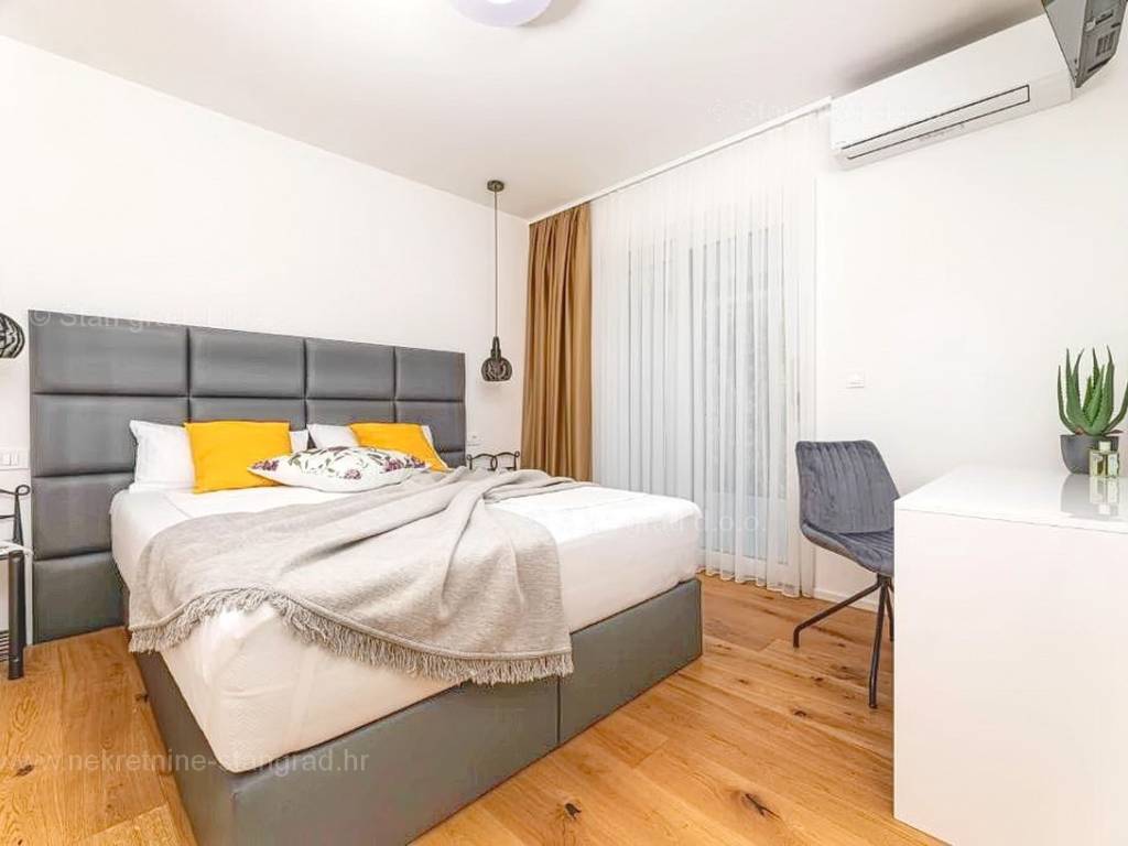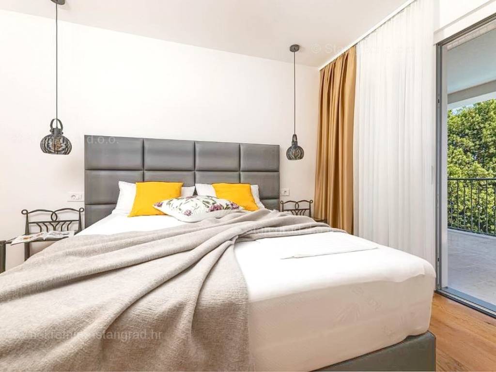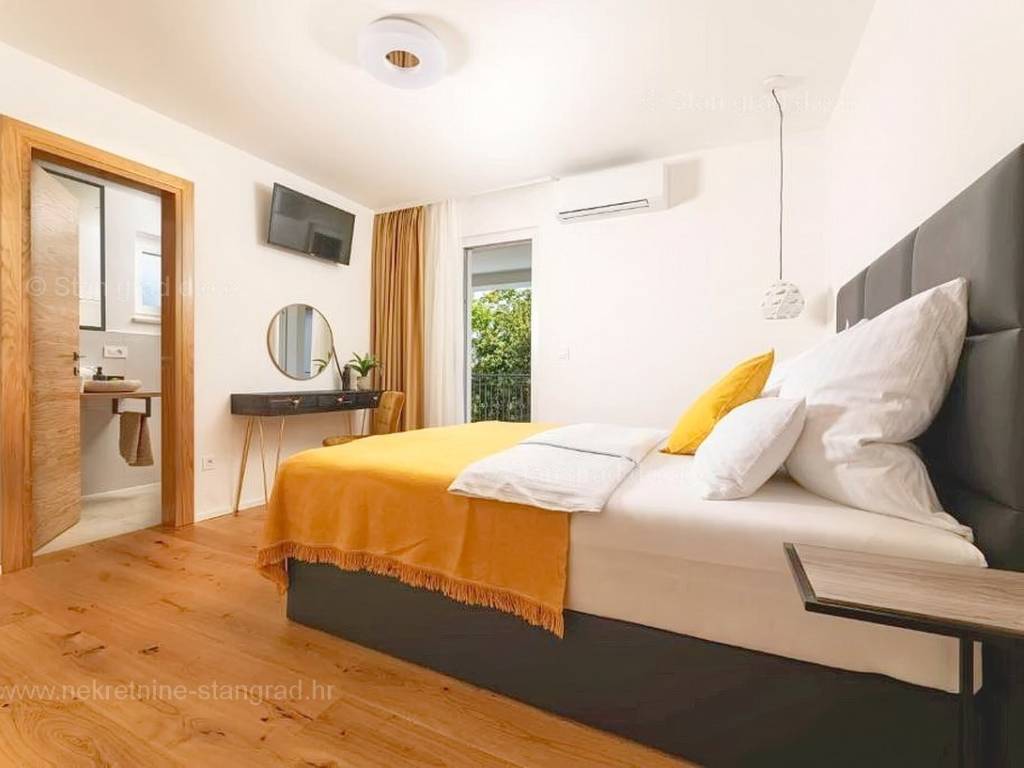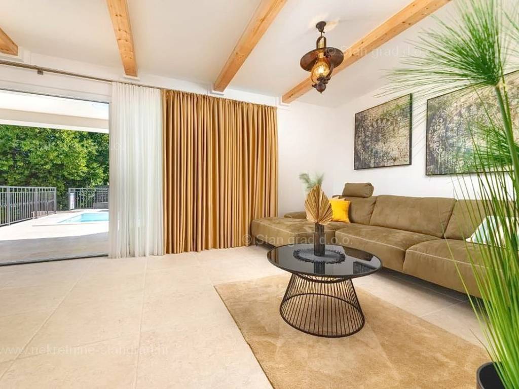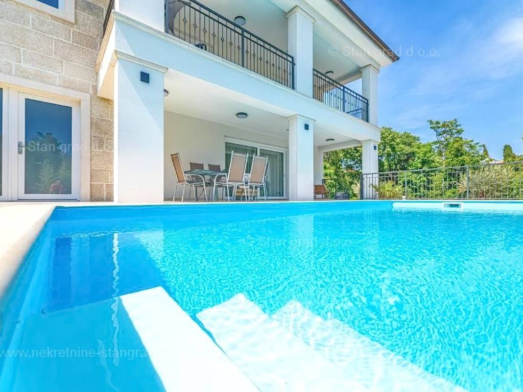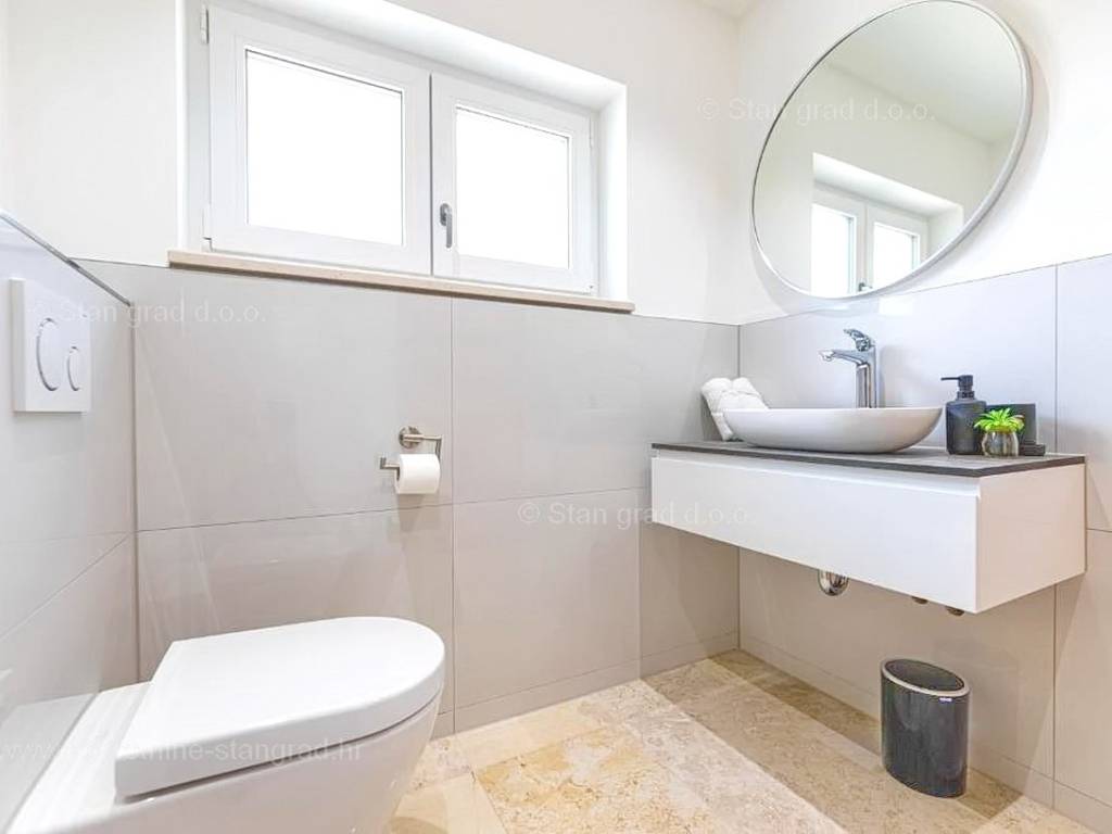 In der Immobilienangebot der Agentur Stan Grad Immobilien wird eine designerisch gestaltete und modern gebaute Touristenvilla in der nördlichen Adriatischen Mittelmeerregion auf der Insel Krk zum Verkauf angeboten. Diese attraktive Immobilie befindet sich an einem hervorragenden Standort, nahe dem Zentrum des bekannten Touristenortes Stadt Krk. Strukturmäßig handelt es sich um ein freistehendes Einfamilienhaus auf zwei Etagen.