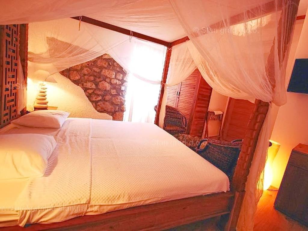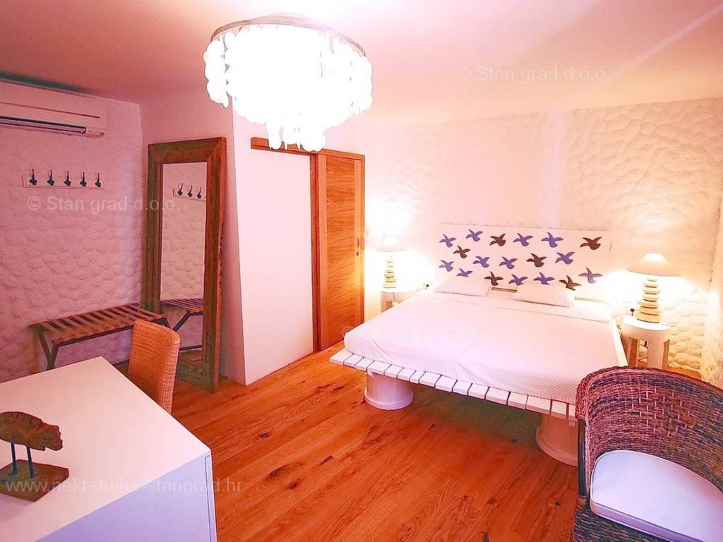 Aus dem Angebot unserer Agentur an hervorragenden Immobilien an der nördlichen Adria sticht ein Haus hervor, das in der begehrten kroatischen Küstenregion, der Insel Krk, gebaut wurde. Dieses Anwesen befindet sich in bester Lage, integriert in das enge Zentrum des alten historischen Kerns der Stadt Krk und in unmittelbarer Nähe zum Meer, dem Strand und anderen touristischen Einrichtungen. Das Anwesen diente als Boutique-Hotel und bietet nun die Möglichkeit für ein komfortables Familienleben oder die Fortsetzung touristischer Aktivitäten. In einem sehr gut gebauten Gebäude erstreckt sich die Immobilie über das Erdgeschoss, die 1. und 2. Etage sowie den Dachboden. Das gesamte Anwesen nimmt eine Fläche mit einer Gesamtfläche von ca. 180 m2 ein. Dieser Bereich wird vom Empfangs- und Eingangsbereich im Erdgeschoss, dem Esszimmer, der Küche, zwei Personaltoiletten und einer Gästetoilette im ersten Obergeschoss eingenommen. Im zweiten Stock gibt es 3 Zimmer mit eigenem Bad und Balkon, und im hohen Dachgeschoss gibt es zwei Zimmer mit Bad und eigener Terrasse. Der außergewöhnlich gepflegte Innenbereich der Immobilie ist hervorragend mit luxuriösen und hochwertigen Möbeln sowie moderner technischer Ausstattung ausgestattet. Nutzer der Immobilie haben die Möglichkeit, ihre Fahrzeuge auf dem öffentlichen Parkplatz abzustellen. Darüber hinaus ist anzumerken, dass das Haus so ausgerichtet ist, dass es einen schönen Blick auf die Stadt bietet. Die betreffende Immobilie ist schuldrechtlich Eigentum und unterliegt bei der Eigentumsübertragung der Berechnung der Immobilienumsatzsteuer in Höhe von 3 %. Der Immobilienverkäufer garantiert eine schnelle Übertragung der Eigentumsrechte sowie eine ordnungsgemäße Eigentums- und technische Dokumentation. Wir erwarten Sie in Kvarner, an der Adresse unseres Büros auf der Insel Krk. Wenn Sie sich für uns entscheiden, unterstützt Sie das Expertenteam des Maklerbüros Stan Grad Immobilien gerne bei der Eigentumsübertragung und der Nebenkostenabrechnung auf Ihren Namen.