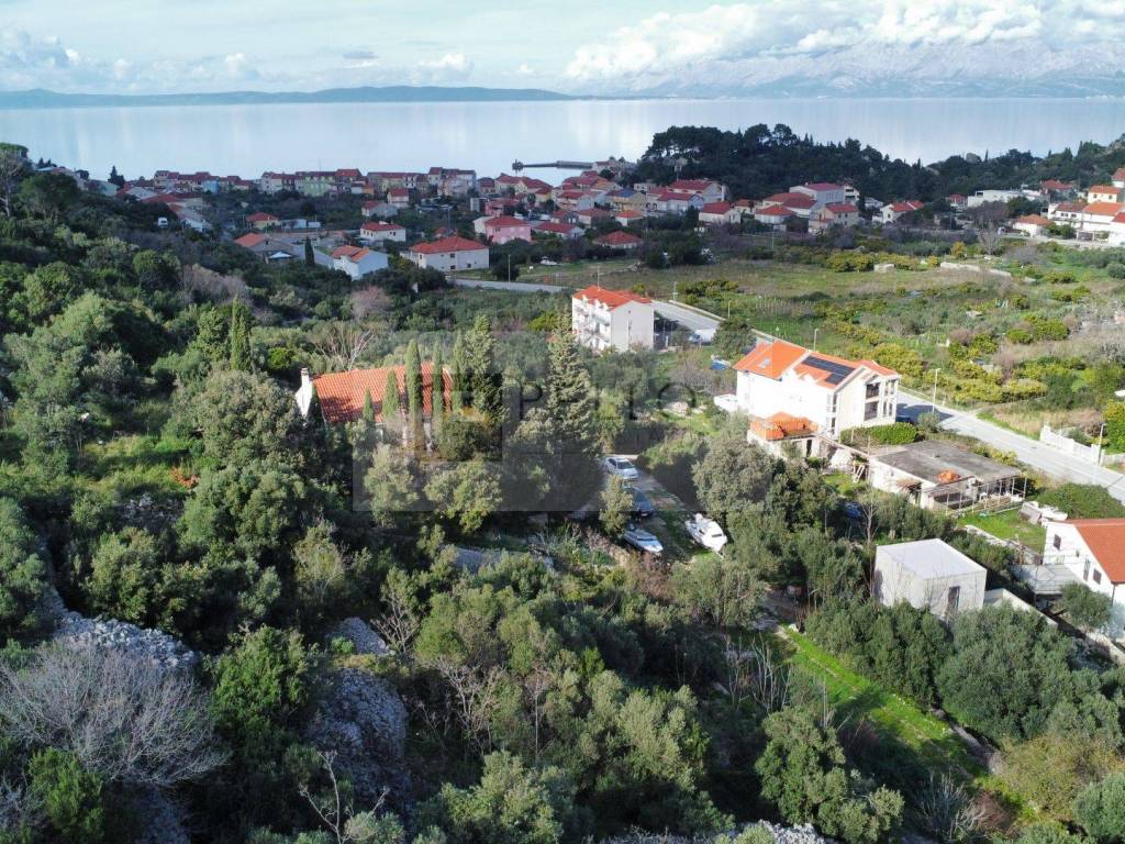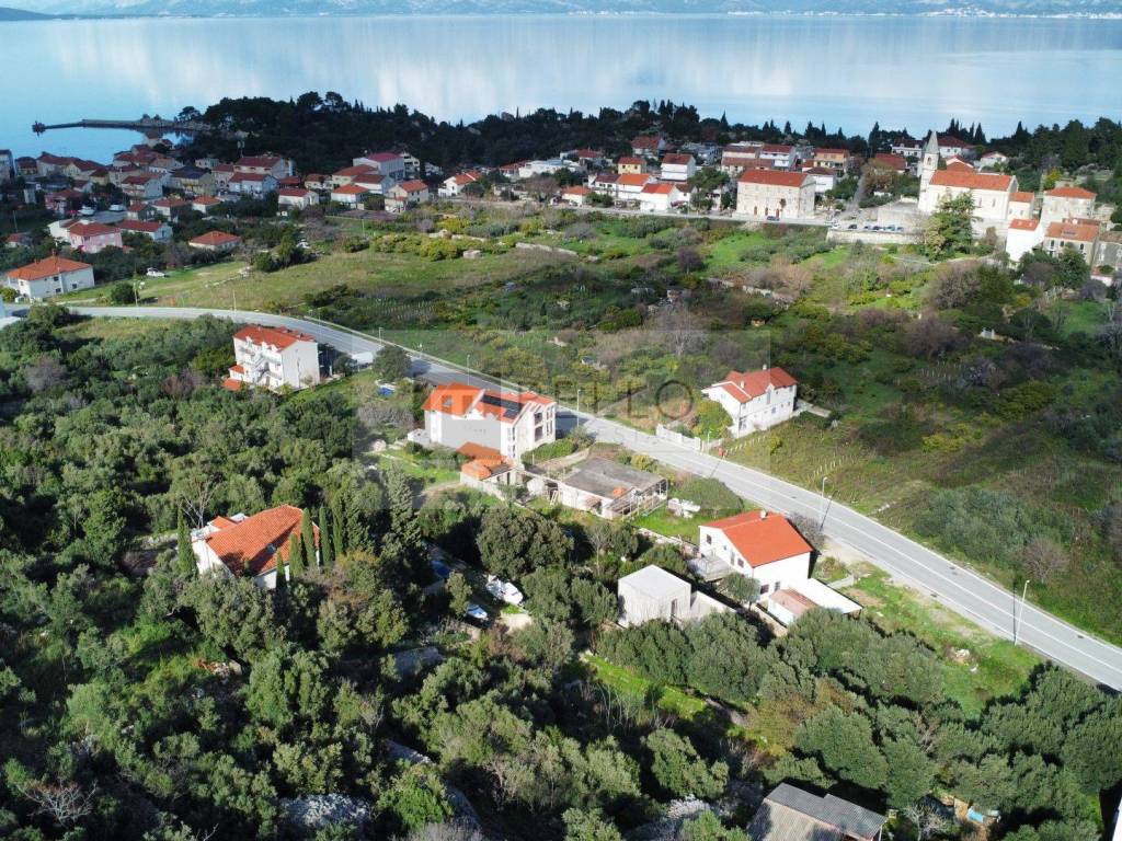 **Lage:** Trpanj, Halbinsel Pelješac **Grundstücksfläche:** 661 m² **Nutzung:** Bauland **Bebauungsmöglichkeit:** Drei Etagen + unterkellerter Keller **Ausrichtung:** Osten **Aussicht:** Blick auf Trpanj und teilweise auf das Meer **Entfernung zum Meer:** 750 m