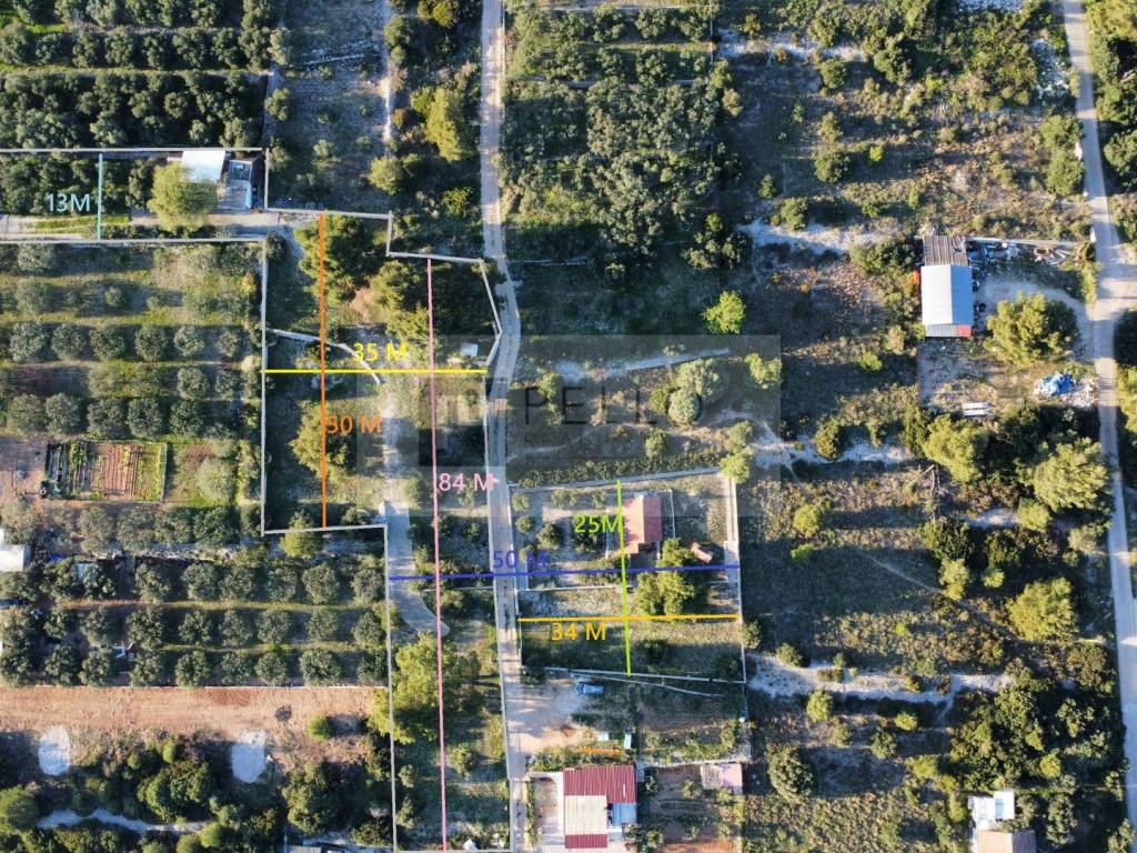 Das Anwesen umfasst eine Fläche von 4040 m², ideal für Naturliebhaber und landwirtschaftliche Nutzung. Auf dem Grundstück befinden sich ca. 80 Olivenbäume und zwei Häuser (ca. 40 m²), die nicht im Grundbuch und Kataster eingetragen sind, jedoch über Strom- und Wasseranschluss verfügen und für den Aufenthalt eingerichtet sind.