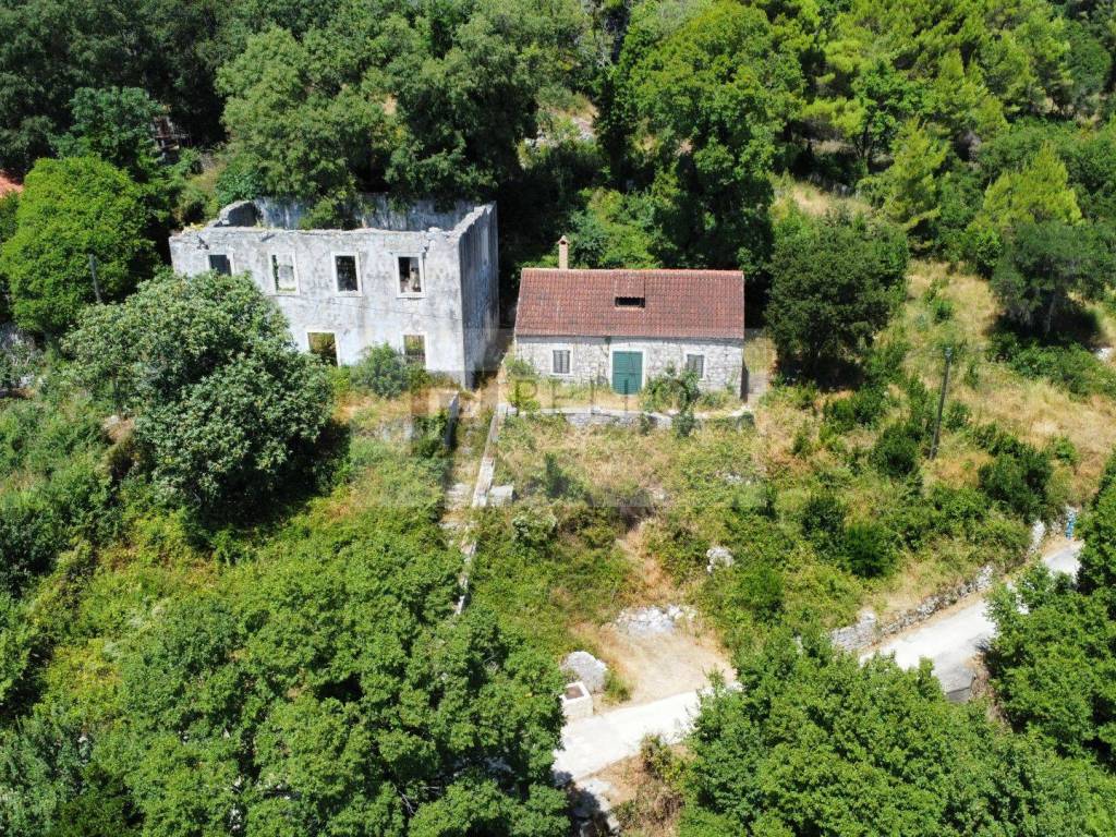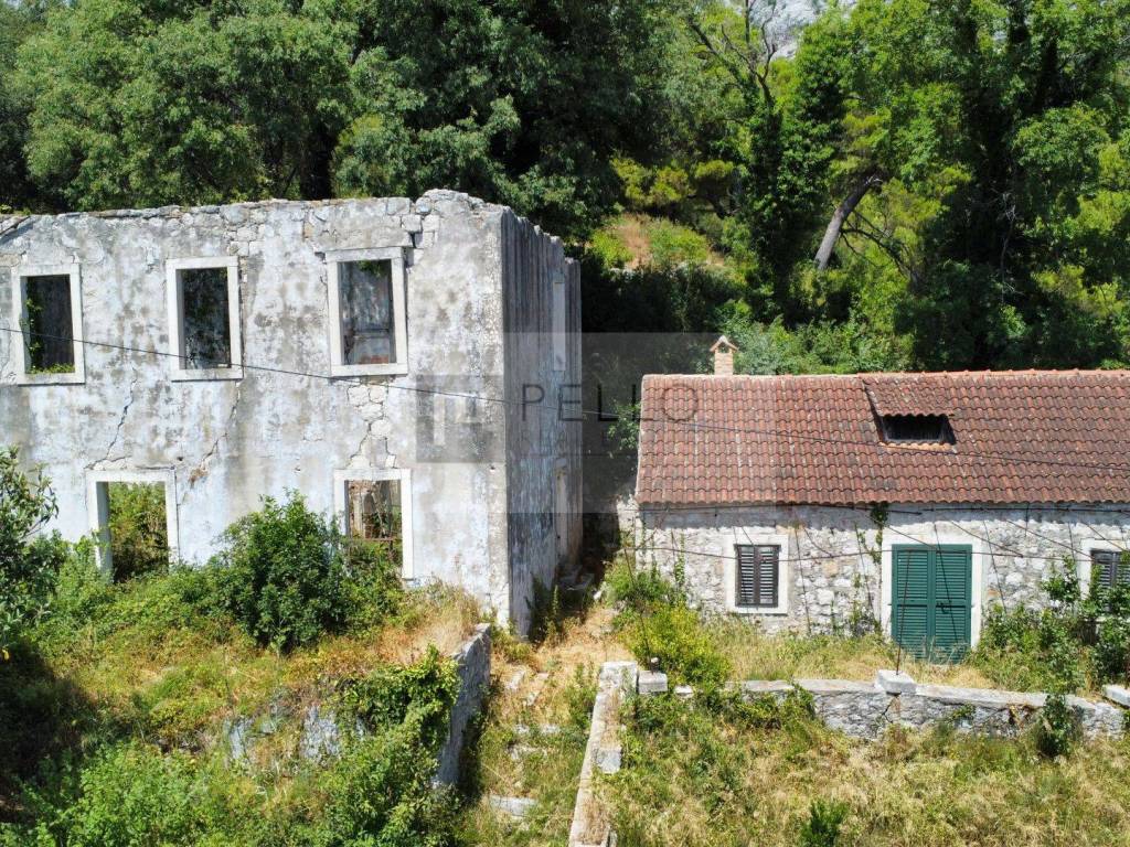 Zum Verkauf steht eine außergewöhnliche Immobilie in ruhiger Lage in Ruskovici, oberhalb von Orebic, direkt unterhalb des Hanges des Berges Sveti Ilija. Das Grundstück hat eine Gesamtfläche von ca. 7200 m² und ist nur 1200 Meter vom Meer entfernt. Es bietet einen herrlichen Panoramablick auf Orebic, den Kanal von Korcula, die Altstadt von Korcula und das offene Meer.