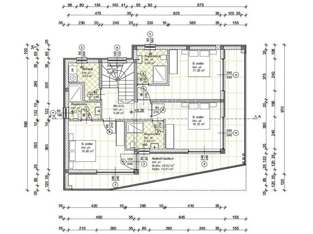 Im ersten Stock wird es einen Flur, eine Waschküche, drei Schlafzimmer mit jeweils eigenem Bad und Ausgängen zu einer überdachten Terrasse mit freiem Panoramablick auf das Meer geben.