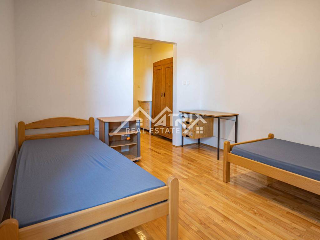 In einem ruhigen und gepflegten Teil von Osijek steht eine großzügige Dreizimmerwohnung mit 92 m² zum Verkauf. Sie befindet sich im zweiten Stock eines modernen Gebäudes aus dem Jahr 2007. Die Wohnung besteht aus einem Flur, einem Wohnzimmer mit Essbereich, einer Küche, zwei Schlafzimmern, einem Badezimmer mit Badewanne und Bidet sowie zwei Loggien – eine verglast, eine offen – ideal für jede Jahreszeit.