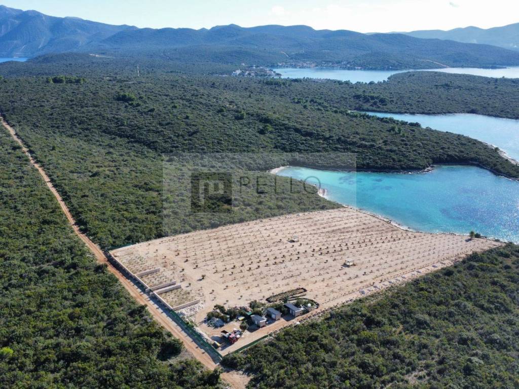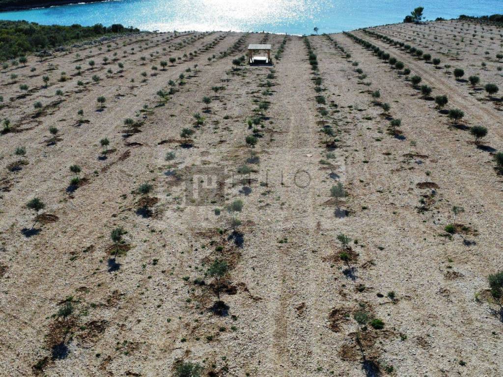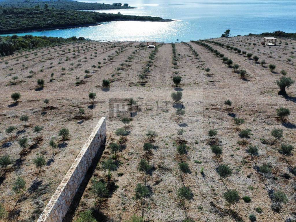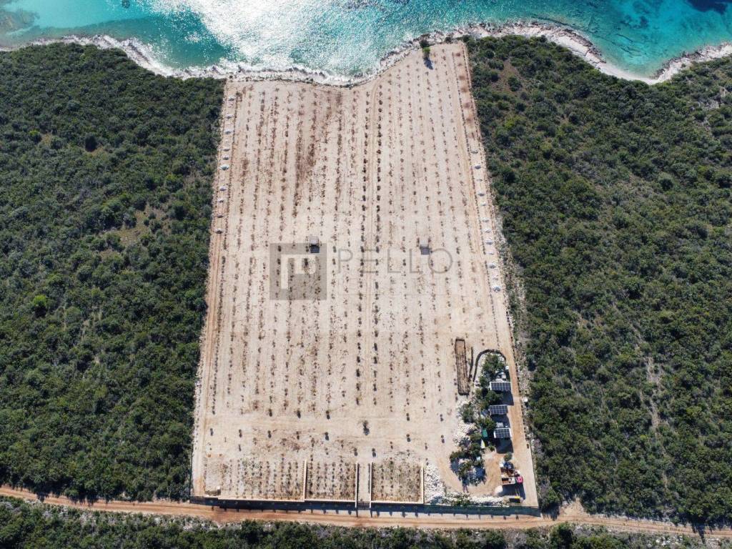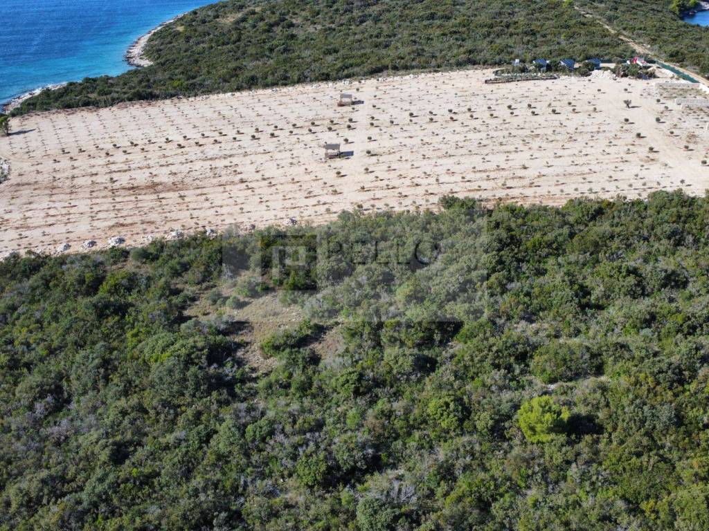 Das Grundstück mit einer Fläche von 30.920 Quadratmetern ist nach Südwesten ausgerichtet und bietet ganztägige Sonne sowie einen atemberaubenden Blick auf das Meer – ideale Bedingungen für den Anbau von Oliven und Lavendel.