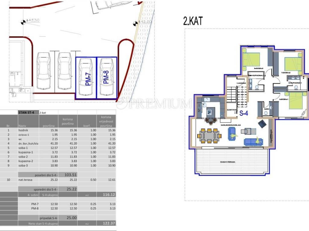 Die Wohnung mit einer Gesamtfläche von 129 m2 befindet sich im 2. Stock eines Wohngebäudes mit insgesamt 4 Wohneinheiten.