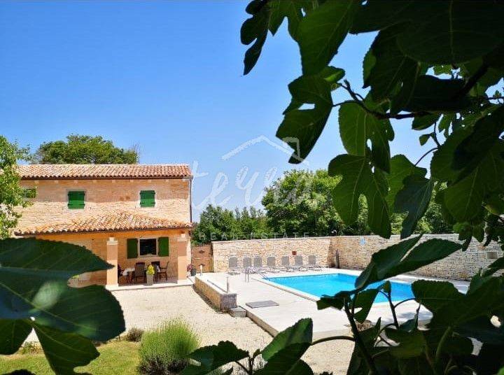 Dieses schöne Steinhaus steht zum Verkauf, umgeben von viel Grün unweit von Žminj.