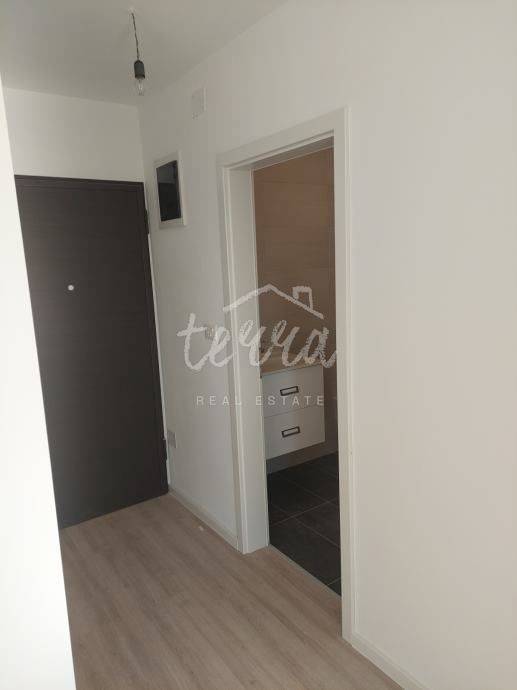 Zum Verkauf steht eine neue, bezugsfertige Wohnung mit Parkplatz. Die Fläche der Wohnung beträgt 45 m2 und besteht aus einer Eingangshalle, einem Badezimmer, einem Schlafzimmer, einem Wohnzimmer und einer offenen Küche sowie einer überdachten Terrasse (Loggia). Das Badezimmer ist ausgestattet und die Wohnung ist mit einer Klimaanlage ausgestattet. Die Wohnung befindet sich in einem Neubau im vierten Stock (von insgesamt fünf Etagen) und das Gebäude verfügt über einen Aufzug.