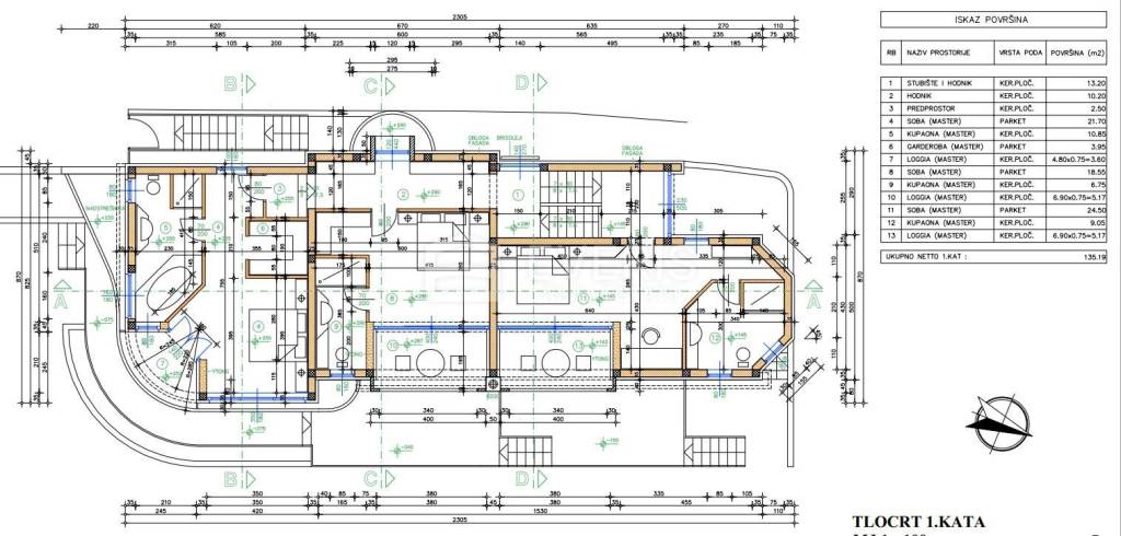 * Flur, Treppenhaus, drei Schlafzimmern mit eigenen Badezimmern, Garderobe und drei Loggia.
