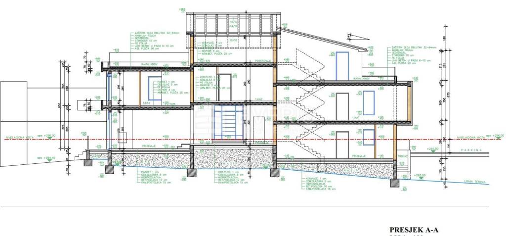 * Überdachter Eingang, Flur, Treppenhaus, Küche mit Esszimmer, Wohnzimmer, Speisekammer, zwei Toiletten und Wellness. Das Erdgeschoss verfügt außerdem über zwei nicht überdachte Terrassen und einen Swimmingpool.