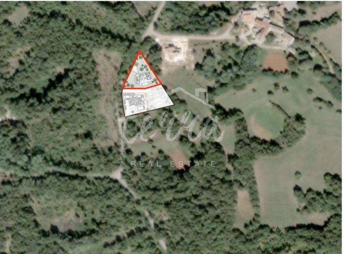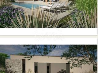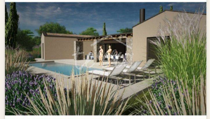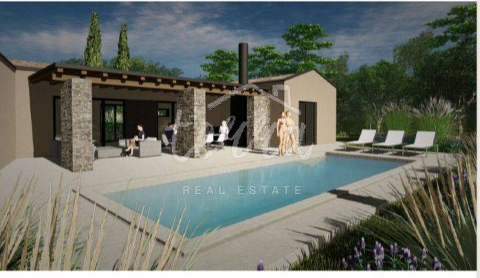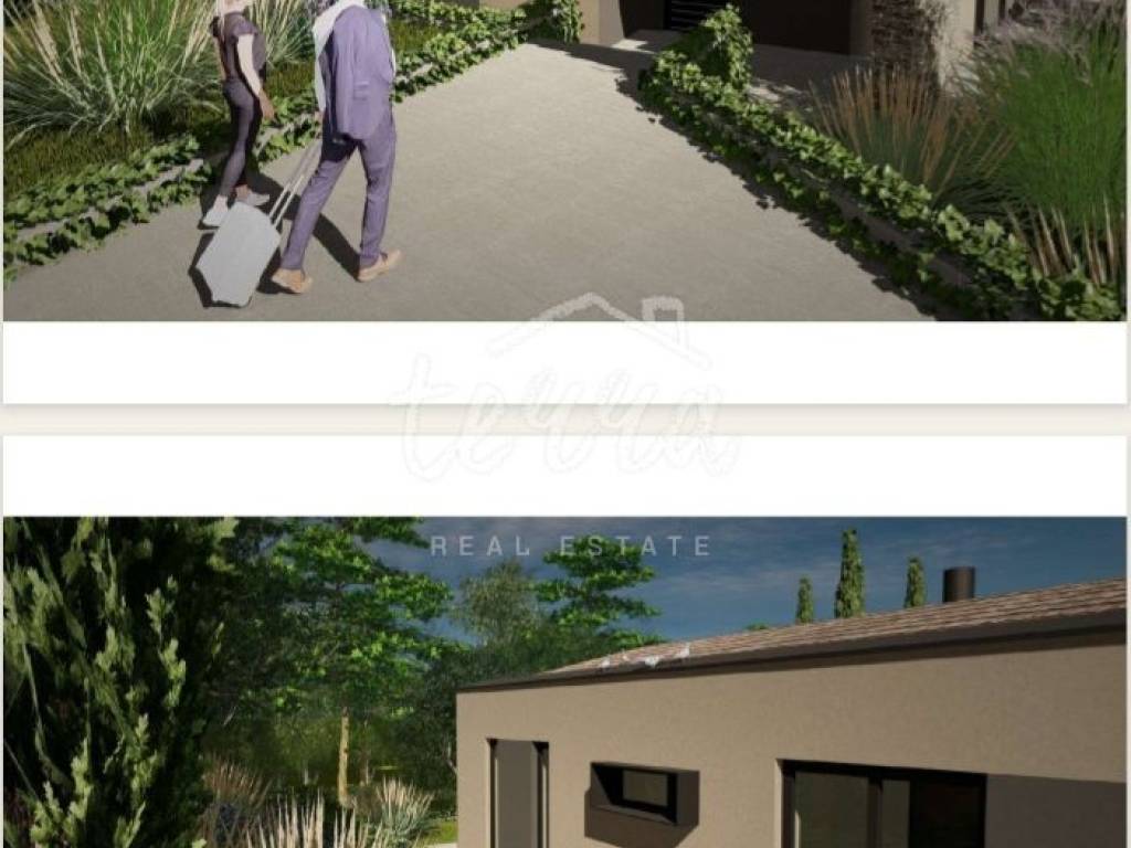 Baugrundstück in ruhiger Lage, in der Nähe von Gračišća und Žminj. Laut Projekt ist der Bau einer modernen mediterranen Villa mit einer Fläche von 129 m² geplant +38 m² überdachte Terrasse+8 m² überdachter Eingang auf einem Grundstück von 1.375 m².
