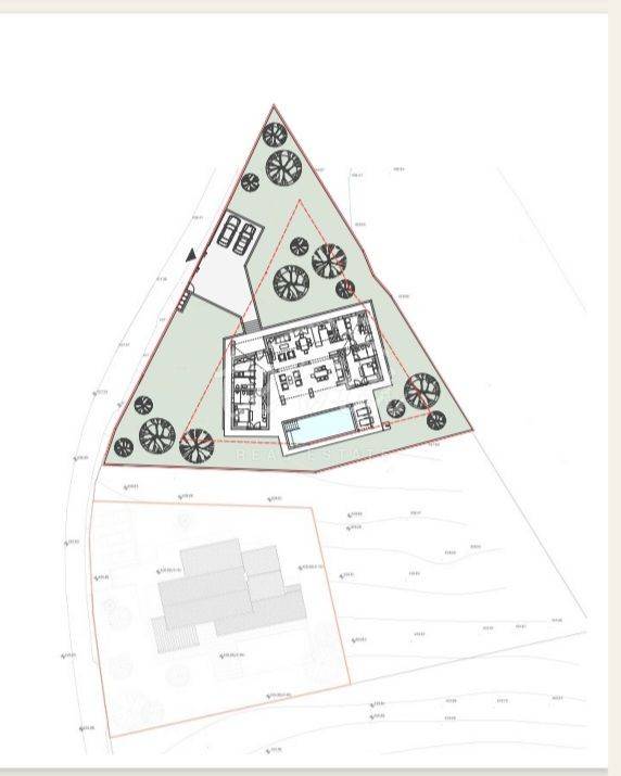 DESIGN Das Haus verbindet moderne Architektur mit traditionellem mediterranen Stil unter Verwendung natürlicher Materialien wie Stein, Holz usw. Klare Linien verbinden den Außenbereich mit der umgebenden Grünanlage. Alle Räume sind wunderschön verglast und sonnig und bieten Blick auf den Pool. Große Glaswände und eine überdachte Terrasse erweitern das Wohnzimmer und schaffen Raum für geselliges Beisammensein und Genuss.
