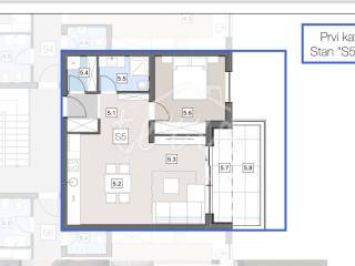 Eine 1-Zimmer-Wohnung im ersten Stock einer neuen, modernen Stadtvilla steht zum Verkauf.