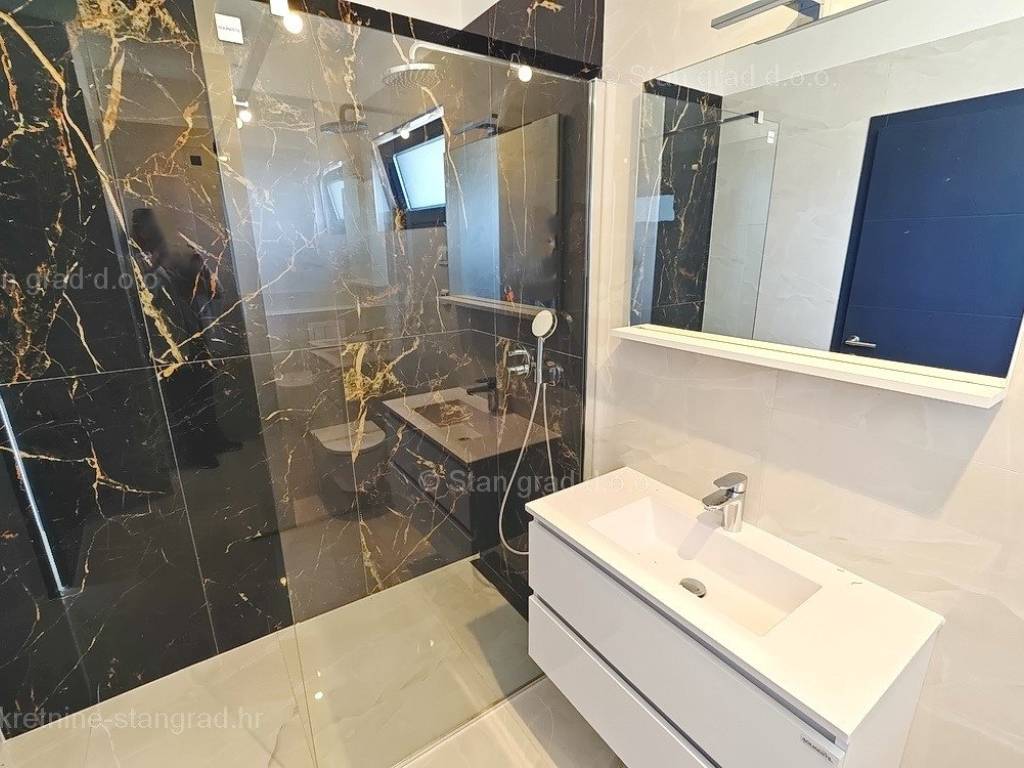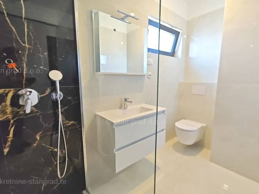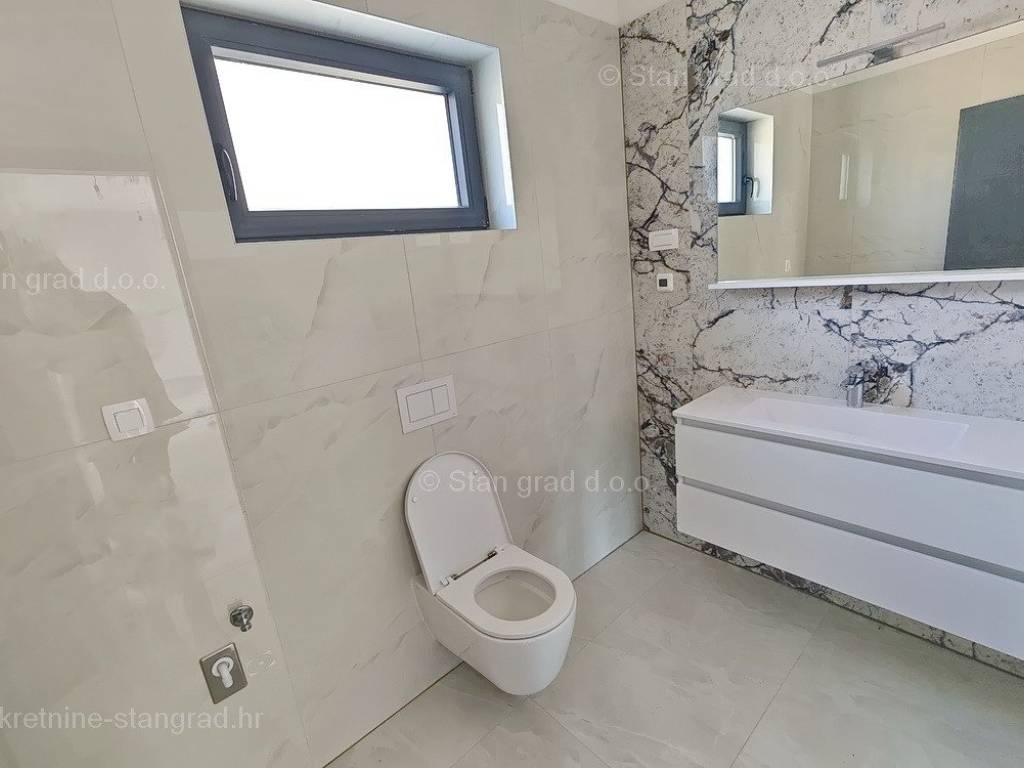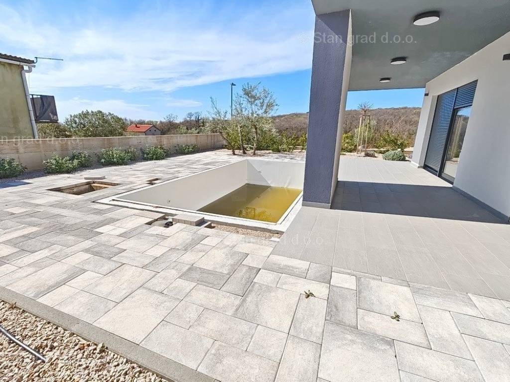 In unserer Agentur in Kvarner steht ein sehr wertvolles und aufwendig gebautes Ferienhaus im bekannten und attraktiven adriatischen Urlaubsgebiet, der Insel Krk, zum Verkauf. Das Anwesen befindet sich in der Nähe der Stadt Krk, dem weiteren Gebiet der Stadt Krk, in einer Lage, die Genuss im Grünen der Natur bietet. Strukturell gesehen handelt es sich um ein Einfamilienhaus mit großem Garten und Swimmingpool. Das äußerst attraktive Gebäude besteht aus insgesamt 2 Etagen. Das Haus nimmt eine Gesamtfläche von 150 m2 ein. Das Erdgeschoss des Hauses besteht aus einer Eingangshalle, einem Abstellraum, einer Toilette, einer Küche und einem Esszimmer sowie einem geräumigen Wohnzimmer mit Zugang zu einer überdachten Terrasse mit Garten und Swimmingpool. Der erste Stock des Hauses ist durch eine Innentreppe verbunden, und im ersten Stock befinden sich drei Schlafzimmer und drei Badezimmer. Der Mehrwert dieses gesamten Gebäudes wird durch den Garten mit einem Swimmingpool und einer Liegewiese und einem Pavillon gegeben. Innerhalb des überdachten Stellplatzes auf dem Grundstück des Grundstücks können bequem mehrere Fahrzeuge abgestellt werden. Zusätzlich zu all dem ist es wichtig zu sagen, dass das Haus einen guten Blick auf das Meer und die Küste hat. Diese Immobilie ist Eigentum einer natürlichen Person, daher ist der Käufer verpflichtet, bei Übertragung seines Eigentums auf seinen Namen Umsatzsteuer in Höhe von 3 % zu zahlen. Der Verkäufer dieses Hauses garantiert eine vollständige und ordnungsgemäße Dokumentation und eine einfache Übergabe der Immobilie an den Käufer. Besuchen Sie uns auf der Insel Krk und wir sorgen dafür, dass Sie die Zufriedenheit all unserer Kunden spüren. Das Verkaufsteam der Agentur Stan Grad Immobilien unterstützt den Käufer dieser Immobilie gerne dabei, das Eigentum an der Immobilie in das Grundbuch zu übertragen und Rechnungen für Strom, Wasser und Müllabfuhr auf seinen Namen zu übertragen. Die geplante Fertigstellung der Arbeiten ist Ende 2023.