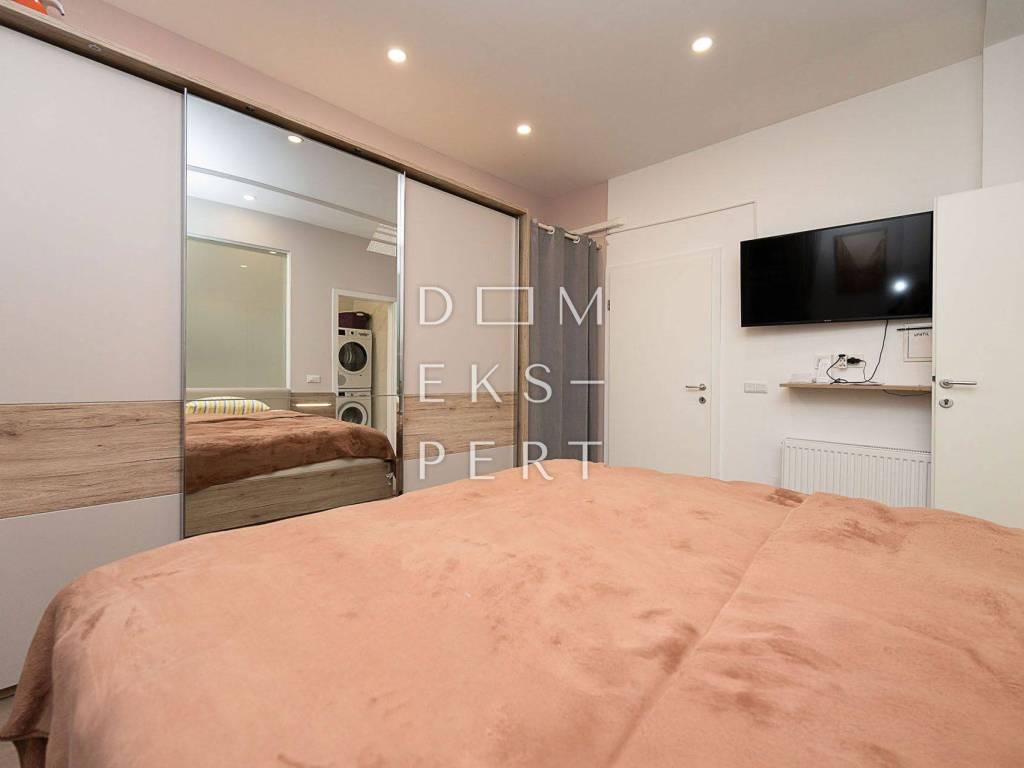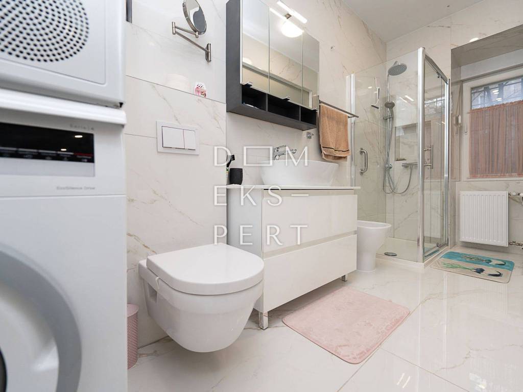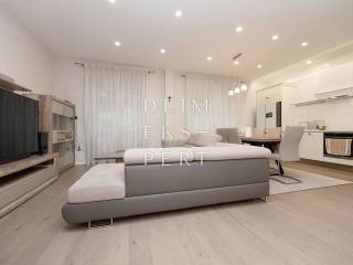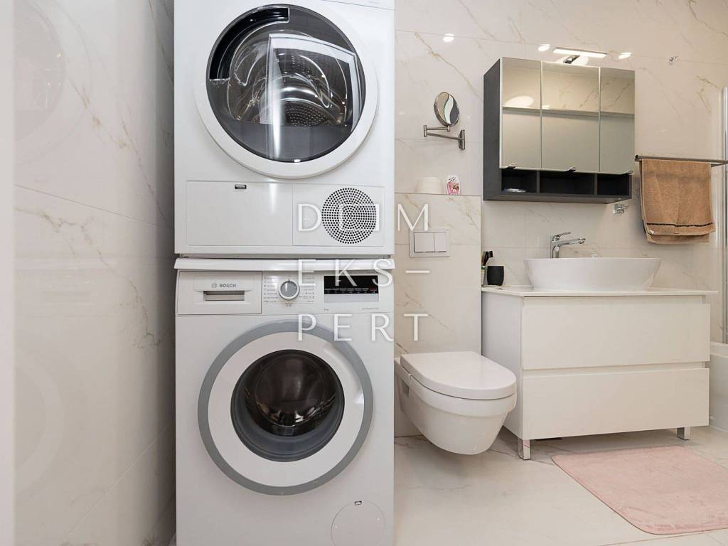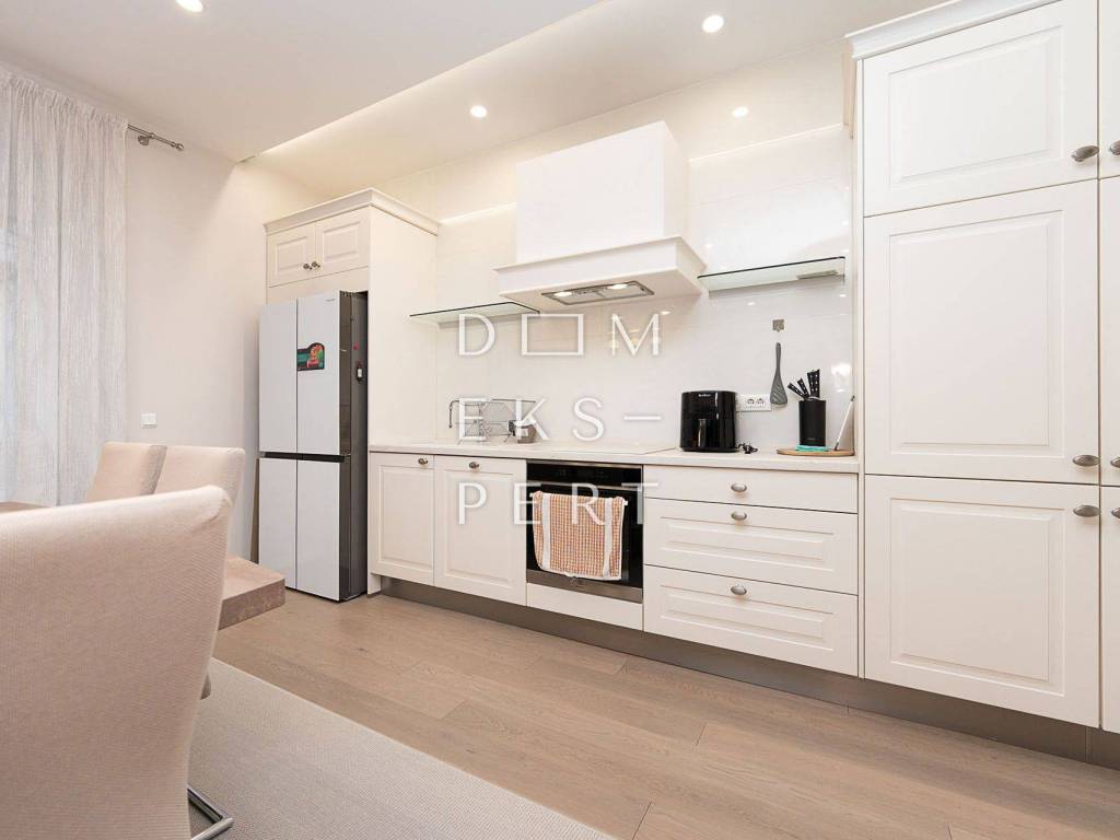 Zur Wohnung gehört eine Garage in einem benachbarten Gebäude. Die Wohnung ist vollständig und hochwertig ausgestattet und mit neuen Geräten und Möbeln möbliert.