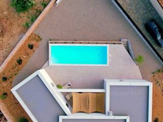 Es handelt sich um ein freistehendes, einstöckiges Haus. Das modern gestaltete Haus erstreckt sich über eine Etage. Die Raumaufteilung ist für den Wohnbedarf einer Familie konzipiert. Die Gesamtfläche des Hauses beträgt 135 m². Diese Fläche umfasst ein Wohnzimmer mit Küche, drei Schlafzimmer, jedes mit eigenem Badezimmer, ein WC sowie zwei geräumige überdachte Terrassen. Die Immobilie ist vollständig mit modernen Möbeln sowie zeitgemäßer und hochwertiger technischer Ausstattung ausgestattet.