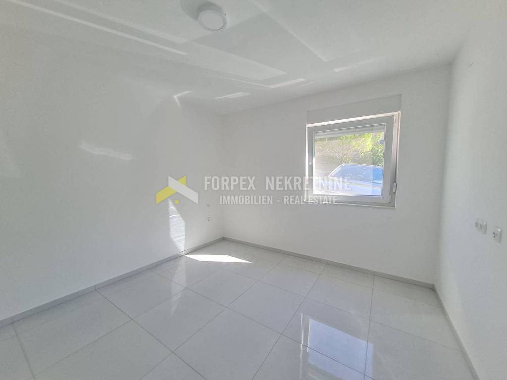 In Crikvenica, 350 Meter vom Meer entfernt, steht eine Wohnung von 58 m2 zum Verkauf. Die Wohnung befindet sich in einem neu erbauten Gebäude im ersten Stock. Es besteht aus zwei Schlafzimmern, einer Küche mit Esszimmer, einem Badezimmer, einem Wohnzimmer und einer überdachten Terrasse mit Blick auf das Meer. Die Wohnung ist nach Süden ausgerichtet und verfügt über ausreichend Licht und einen Blick auf die Insel Krk, was für zusätzliche Atmosphäre sorgt. Beim Bau wurden hochwertige Materialien wie Keramik, Sanitärkeramik, Innenschreinereiarbeiten und PVC-Fenster verwendet. Es ist mit einer Klimaanlage zum Heizen und Kühlen ausgestattet. Zur Wohnung gehört ein Parkplatz im Garten, außerdem besteht die Möglichkeit, einen Garagenplatz zu erwerben. Das Gebäude befindet sich in der Nähe aller notwendigen Annehmlichkeiten, was diese Immobilie ideal für einen Sommerurlaub oder einen längeren Aufenthalt macht.