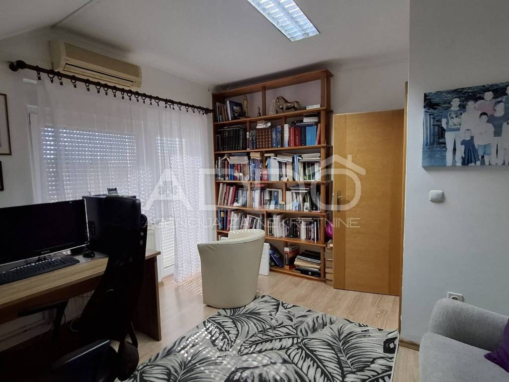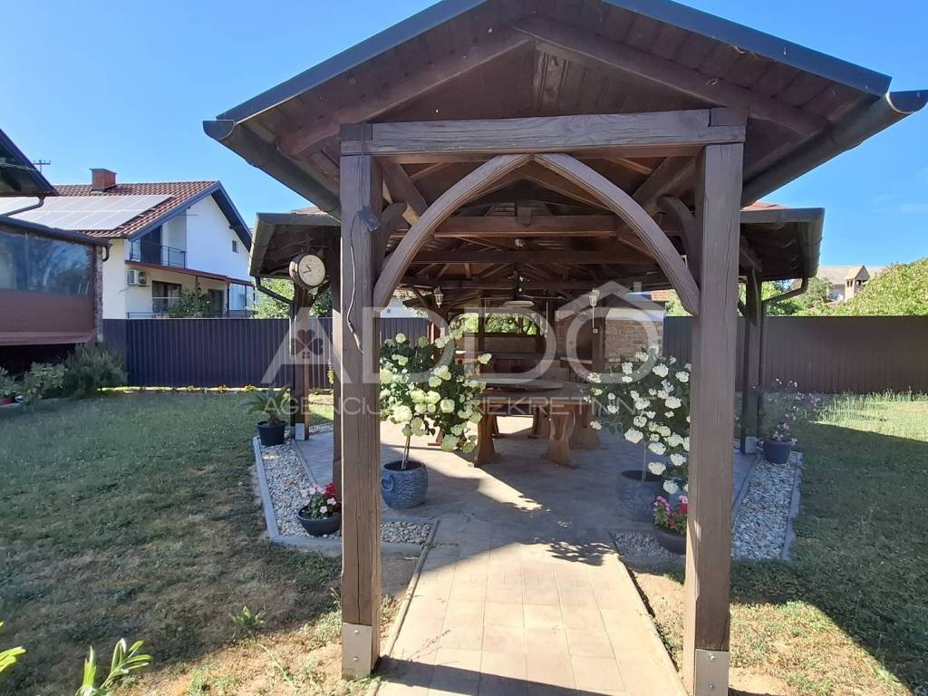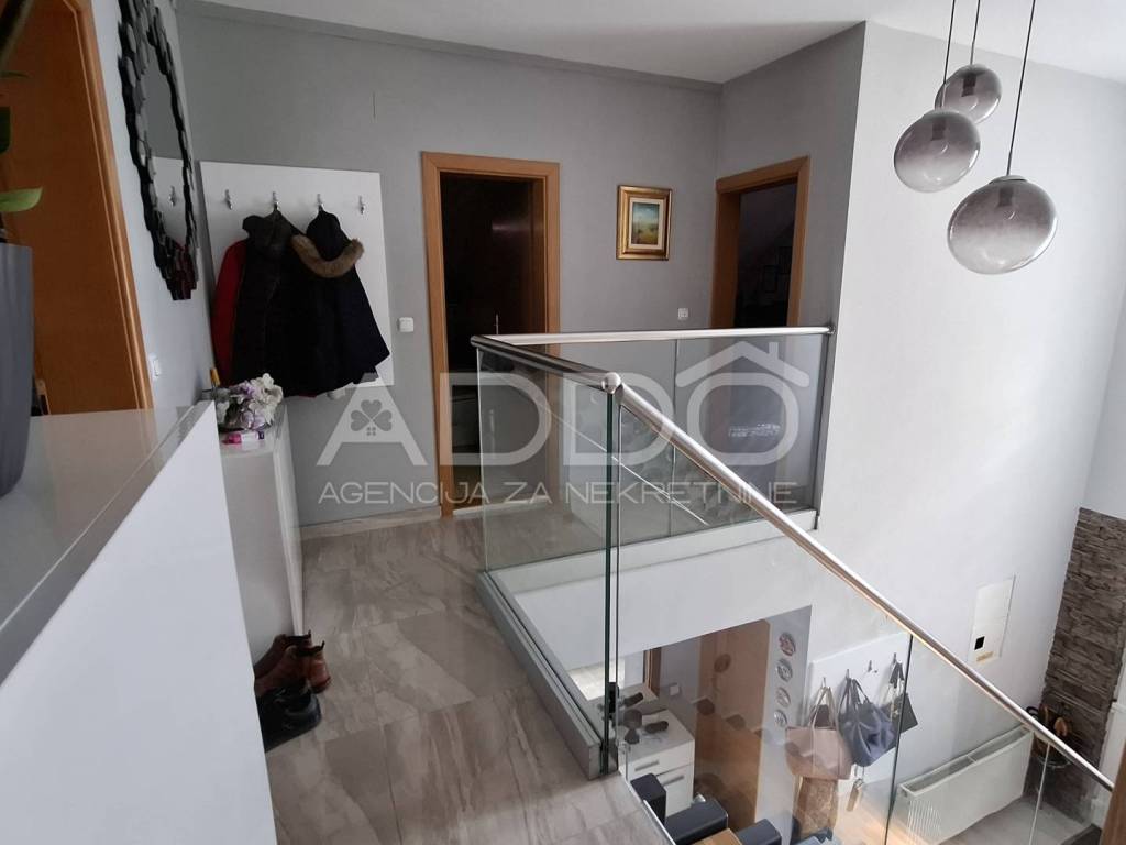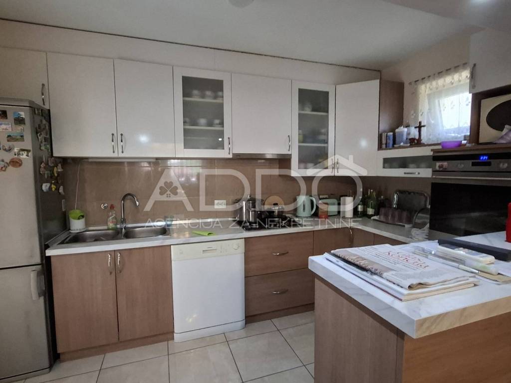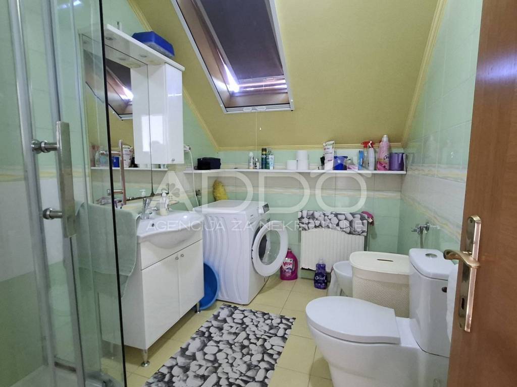 Das Haus zeichnet sich durch eine Garage mit automatischem Tor, geräumige Parkplätze für 4 Fahrzeuge und einen Abstellraum aus. Der Innenbereich ist komplett eingerichtet, mit komfortablen Parkettböden. Besonders attraktiv sind die elegante Einbauküche aus dem Jahr 2017, das Esszimmer und das geräumige Wohnzimmer. Im Esszimmer befindet sich ein Kamin, ideal für kalte Wintertage, während im gesamten Bereich eine Zentralheizung vorhanden ist.