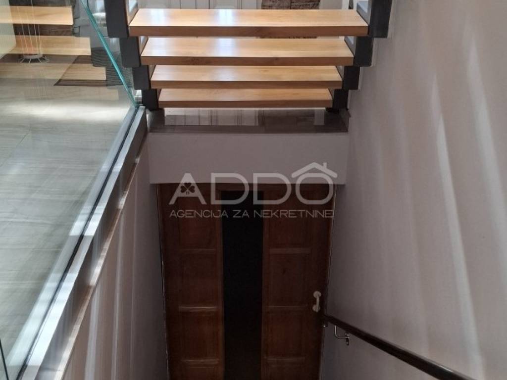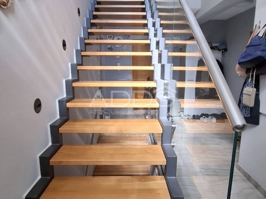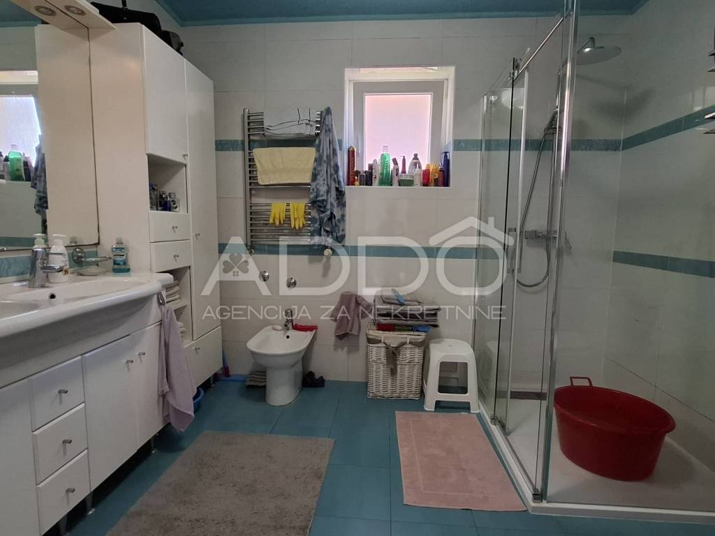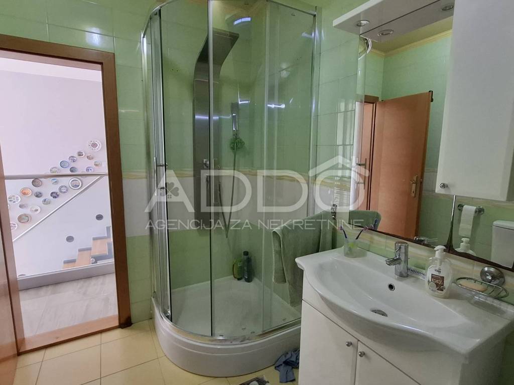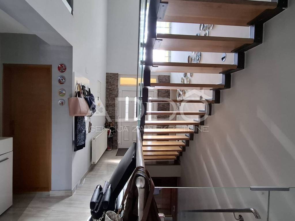 Das Haus zeichnet sich durch eine Garage mit automatischem Tor, geräumige Parkplätze für 4 Fahrzeuge und einen Abstellraum aus. Der Innenbereich ist komplett eingerichtet, mit komfortablen Parkettböden. Besonders attraktiv sind die elegante Einbauküche aus dem Jahr 2017, das Esszimmer und das geräumige Wohnzimmer. Im Esszimmer befindet sich ein Kamin, ideal für kalte Wintertage, während im gesamten Bereich eine Zentralheizung vorhanden ist.