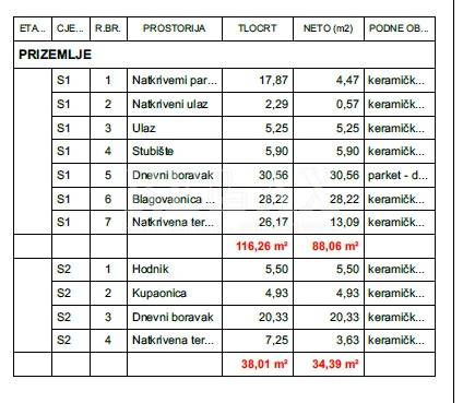 Das Haus besteht aus einem Keller, einem Erdgeschoss und einem ersten Stock. Im Keller befinden sich ein Badezimmer, eine Waschküche, zwei Tavernen, ein Heizraum und ein Abstellraum.