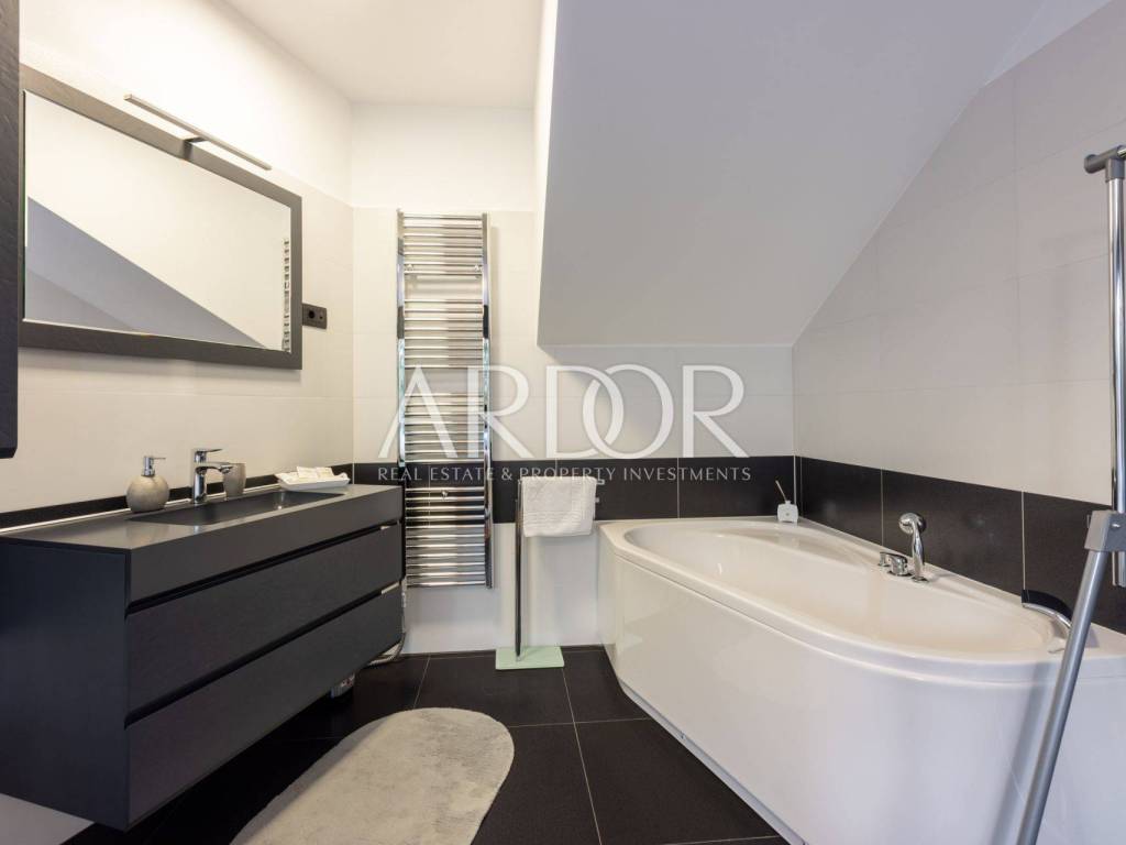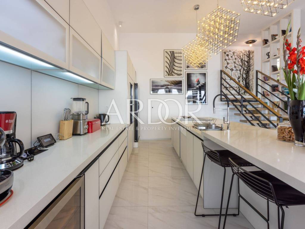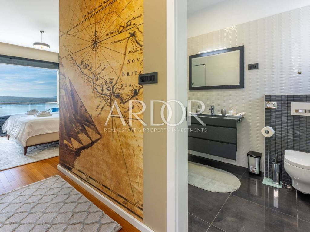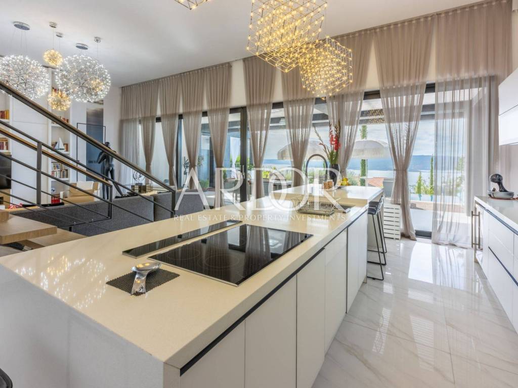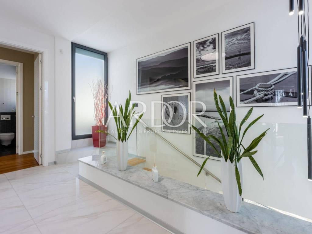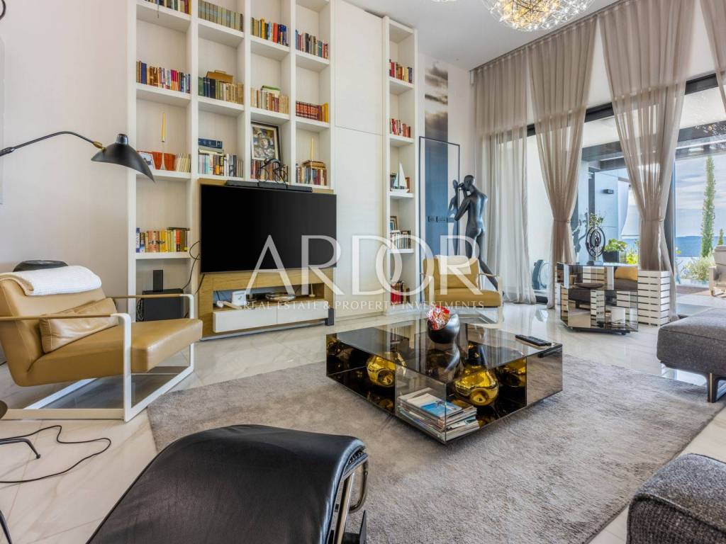 Crikvenica ist ein beliebtes Urlaubsziel, eine kleine Stadt an der Kvarner Küste. Sonne, frische Luft und der Duft des Meeres sowie grüne Parks und Promenaden sind unwiderstehliche Gründe für einen Besuch an der Crikvenica Riviera. Auf einer Anhöhe, mit einem atemberaubenden Panoramablick auf das Meer, liegt diese luxuriöse Villa in einem sorgfältig angelegten und grünen Garten. Die Villa ist so konzipiert, dass sie maximalen Komfort und Privatsphäre bietet, das Haus ist vollständig zum Meer hin ausgerichtet und ermöglicht allen Zimmern einen herrlichen Ausblick, während ausgewählte Vegetation die Privatsphäre in allen Außenbereichen gewährleistet. Mit hochwertigen Materialien für Langlebigkeit und Qualität gebaut, erfüllt diese Villa hohe Standards im Innen- und Außenbereich. Ein ausgeklügeltes Heiz- und Kühlsystem, Fußbodenheizung sowie ein beheizter Pool sorgen ganzjährig für eine angenehme Atmosphäre. Auch die Sicherheit ist auf hohem Niveau, dank der Videoüberwachung des Außenbereichs des Anwesens. Die Villa erstreckt sich über zwei Etagen und bietet vier geräumige Schlafzimmer, jedes mit eigenem Bad. Das offene Konzept von Küche, Esszimmer und Wohnzimmer erweitert den Raum zu den Außenterrassen und schafft eine einzigartige Einheit mit einem der schönsten Ausblicke in Crikvenica. Voll ausgestattet und modern eingerichtet, erzielt diese Immobilie bereits hervorragende Ergebnisse im touristischen Angebot, was sie sowohl für den privaten Genuss als auch als geschäftliche Investition mit hoher Rentabilität zur perfekten Wahl macht.