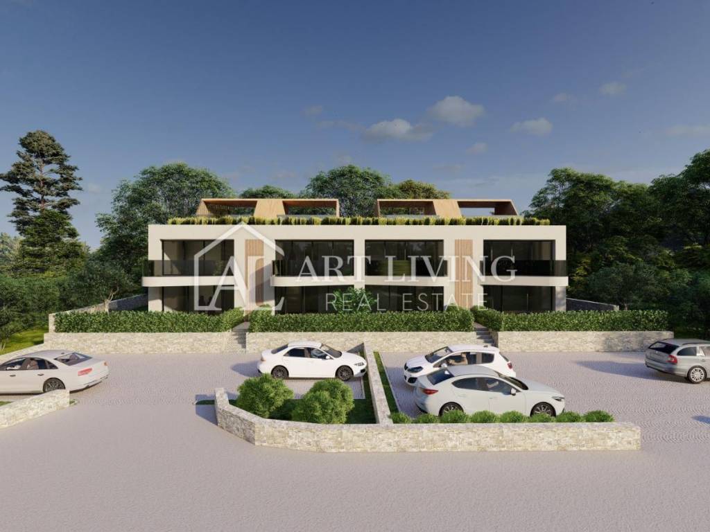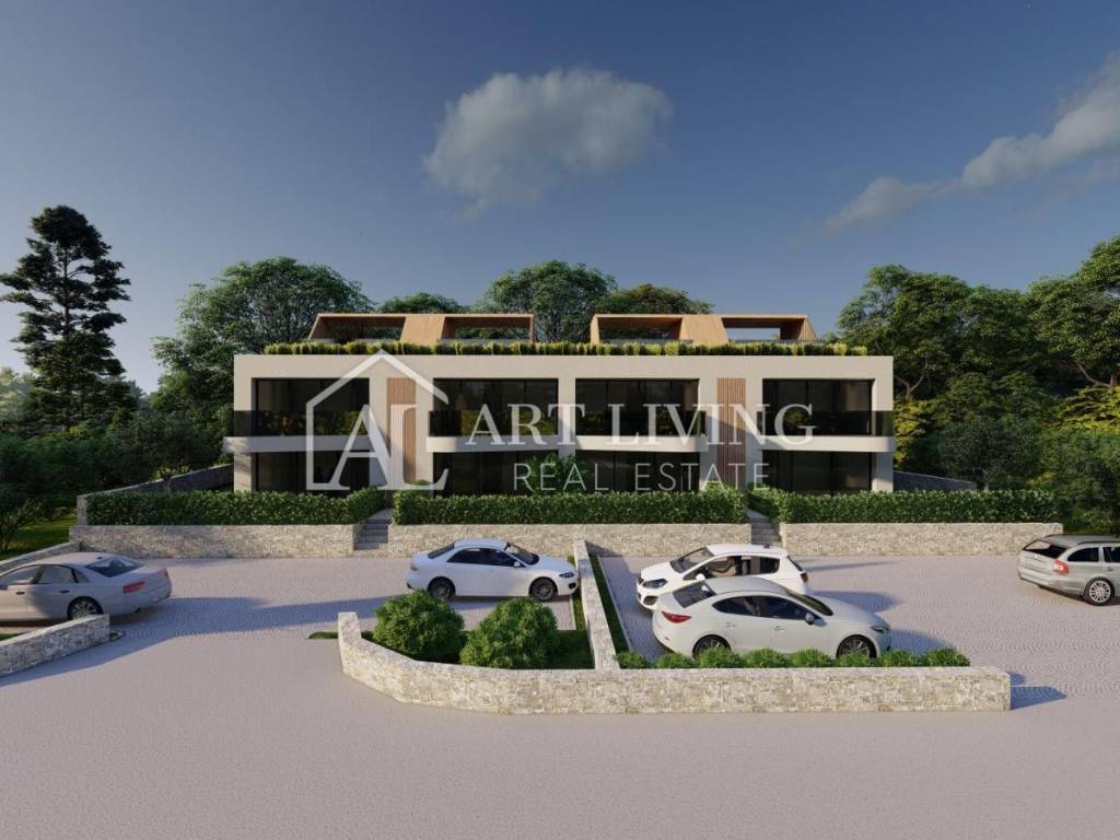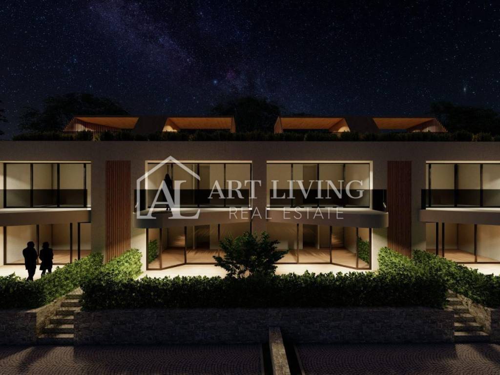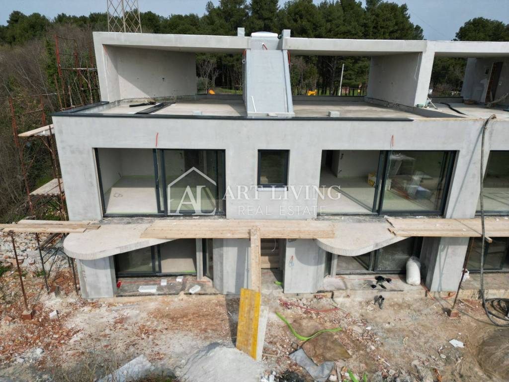 Die 65 m2 große Wohnung besteht aus einem Wohnzimmer mit offener Küche und Esszimmer, 1 Schlafzimmer, einem Abstellraum, einem Badezimmer, einem Flur und einer überdachten Terrasse. Die Wohnung verfügt außerdem über eine großzügige Dachterrasse mit einer Fläche von 31 m2, auf der sich eine Toilette befindet und auf Wunsch eine Sommerküche und ein Whirlpool mit herrlichem Blick auf die Natur und die wunderschöne istrische Landschaft installiert werden können.