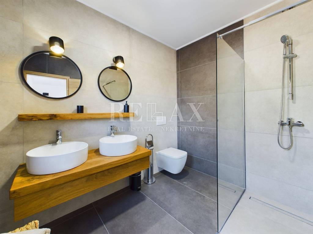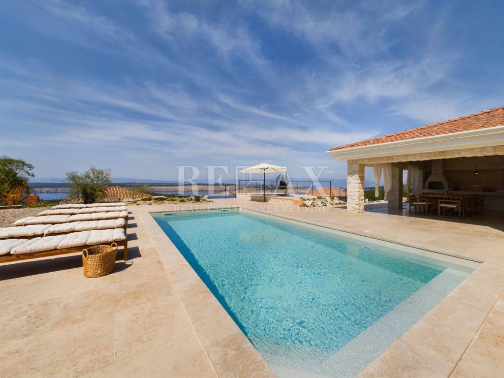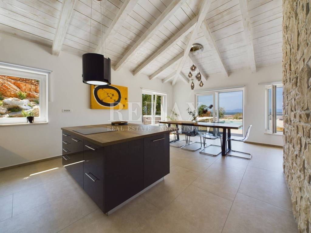 Stellen Sie sich vor, Sie wachen in einer luxuriösen Steinvilla auf, die im malerischen Jadranovo liegt und im Jahr 2024 gebaut wurde. Diese einzigartige Immobilie mit einer Fläche von 234,5 m² verbindet perfekt modernes Design mit traditionellem Charme. Das geräumige Grundstück von 1028,8 m² bietet einen unvergesslichen Panoramablick auf die Adria und die Insel Krk.