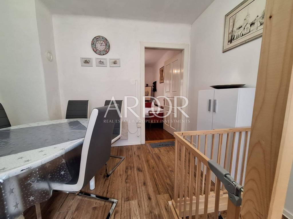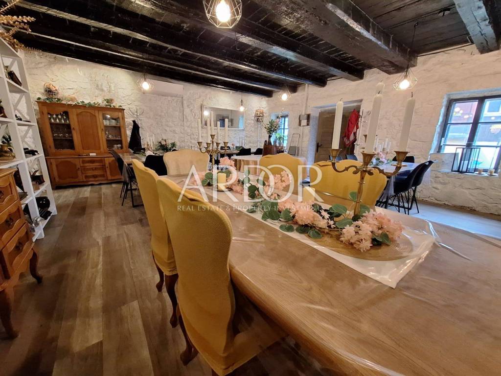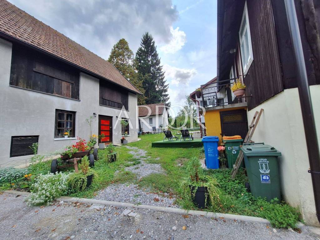 Das erste Gebäude auf dem Grundstück ist ein zweistöckiges Haus. Im Erdgeschoss befindet sich ein geräumiges Wohnzimmer, ideal für Familienfeiern oder gesellige Zusammenkünfte. Das Erdgeschoss verfügt außerdem über zwei separate Toiletten, eine Küche mit Speisekammer und eine Terrasse. Im ersten Stock befindet sich eine Wohnung mit Wohnzimmer, Küche, Bad mit WC und Schlafzimmer. Dieser Raum bietet hohe Funktionalität und Komfort und eignet sich perfekt für das Familienleben oder die Vermietung.