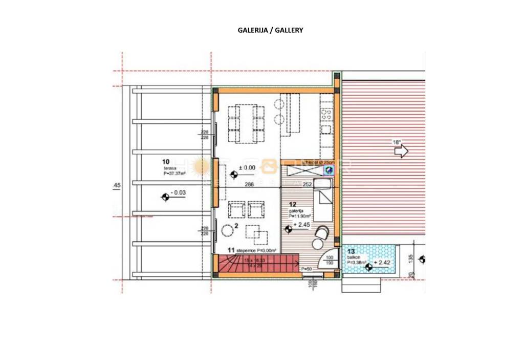 Das Haus verfügt im Erdgeschoss über einen Eingangsbereich, 2 Schlafzimmer, ein Badezimmer mit WC, ein separates WC, einen offenen Wohnraum mit Küche und Essbereich mit Zugang zu einer großen Terrasse sowie eine Galerie von ca. 12m2.