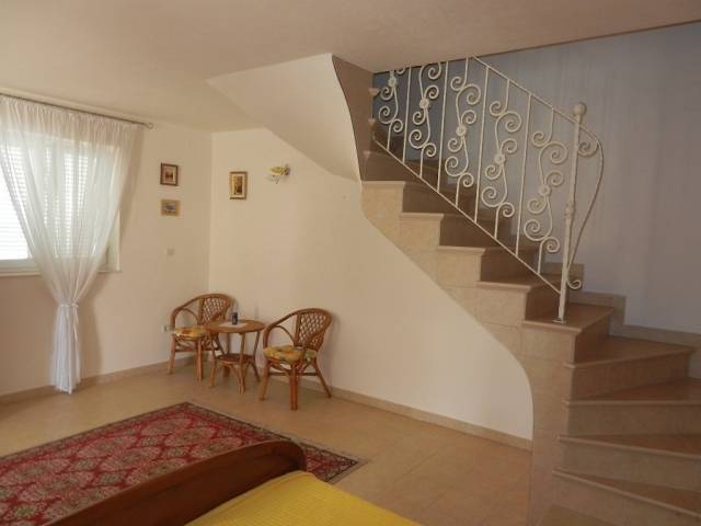 Attraktive Lage in Tisno auf der Insel Murter, 1. Linie zum Meer, im Alten Stadtteil. Schönes Haus auf drei Etagen mit 106m2 Wohnfläche, in zwei separate Einheiten unterteilt. Das Erdgeschoss ist eine Ein-Zimmer-Wohnung von 33m2 Wohnfläche mit Terrasse / Garten von 27m. Das Obergeschoss und Dachgeschoss ist eine Maisonette-Wohnung von 66m2, mit zwei Schlafzimmern, Küche und Wohnzimmer, zwei Bäder, Balkon 3m2, Terrasse 10m2 mit Panoramablick auf das Meer. Das Haus wurde im Jahre 2003 erbaut, voll möbliert, mit hoher Bauqualität gebaut, mit eingebauter Klimaanlage, Telefon, Satelliten-Antennen. Das Haus ist gleich an der Promenade. Das Haus hat Zugang mi Fahrzeug, die öffentliche Parkanlage ist in der Nähe des Hauses.