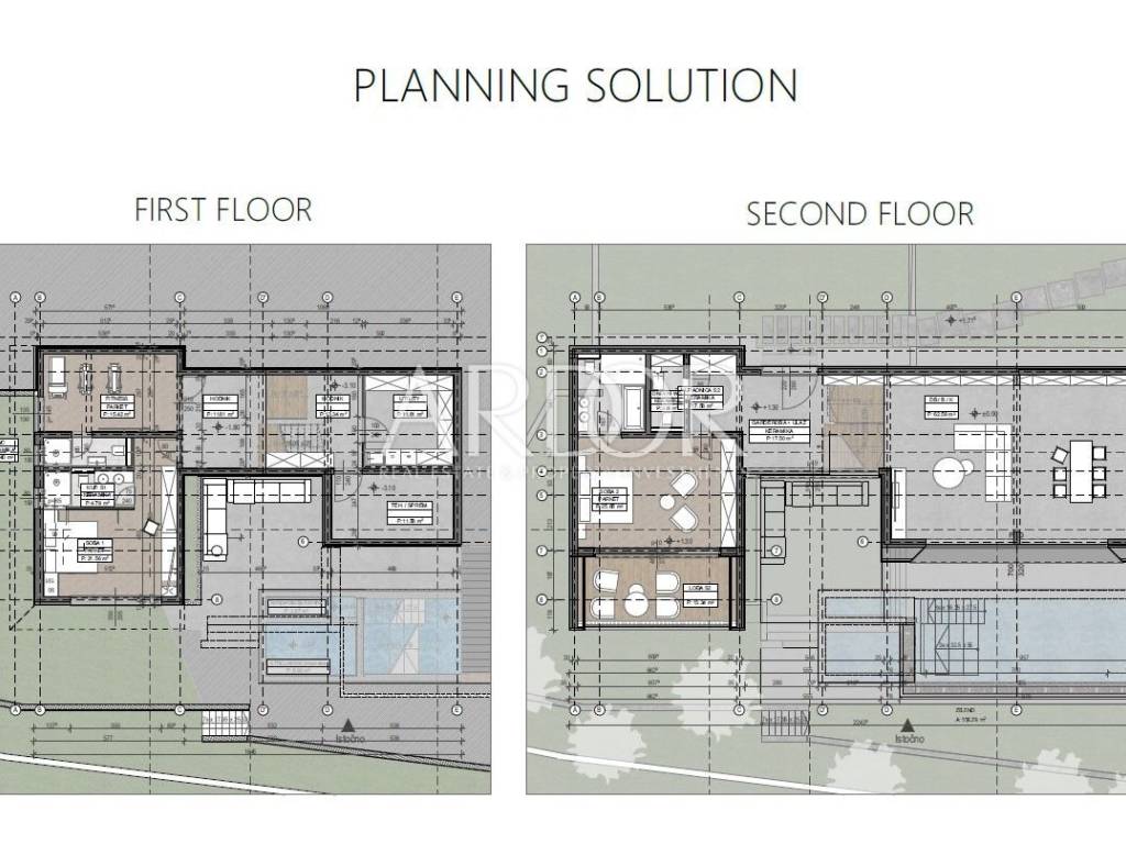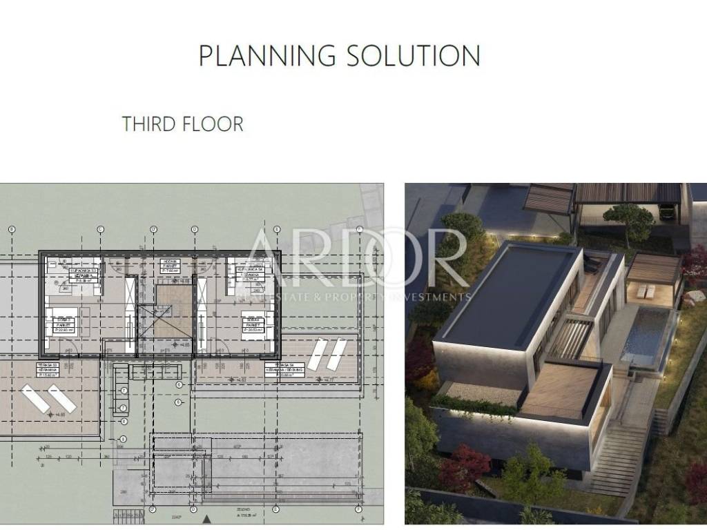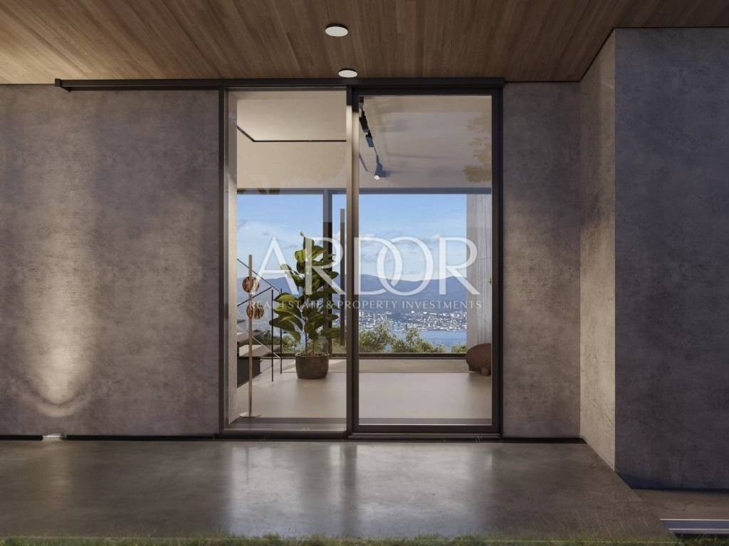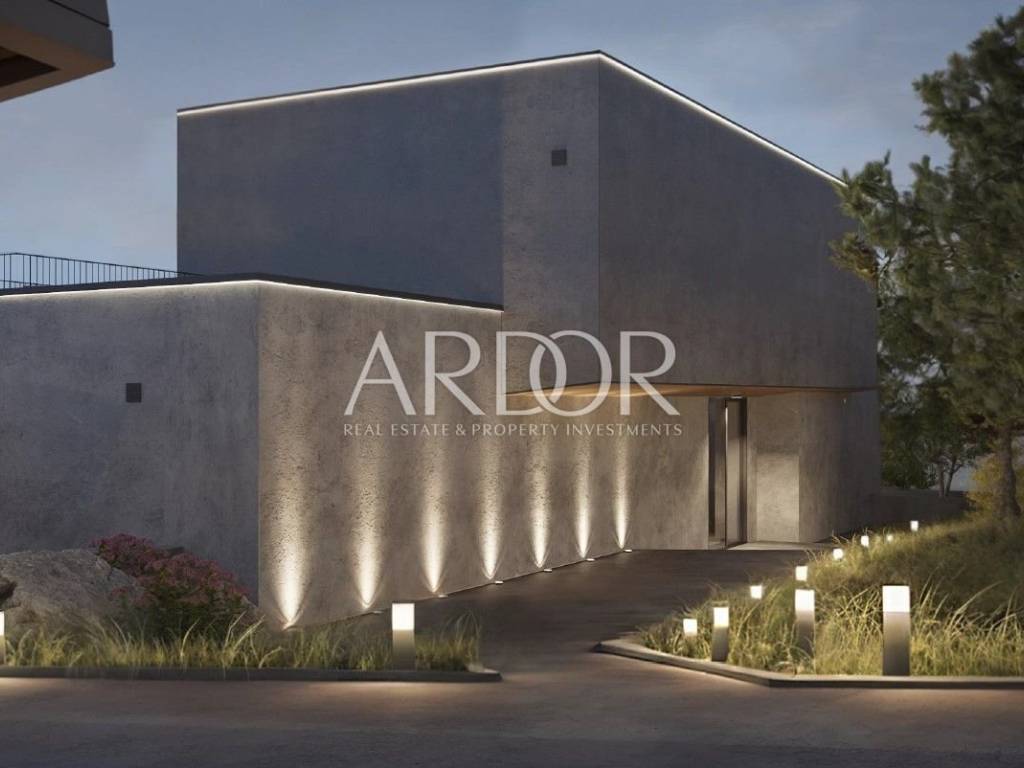 Diese moderne und elegante Villa mit Panoramablick auf das Meer und die Inseln erstreckt sich über ein 921 m² großes Grundstück und bietet einen sorgfältig gestalteten Innenbereich auf drei Etagen, ergänzt durch überdachte und offene Terrassen sowie einen Infinity-Pool, nur 500 Meter Luftlinie vom Meer entfernt.