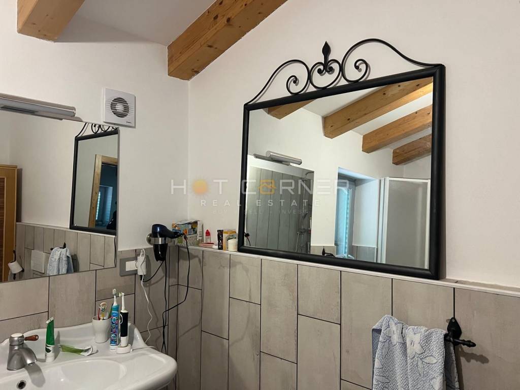 Technisch ist das Haus erstklassig ausgestattet: Eine Wärmepumpe versorgt die Fußbodenheizung und Fan-Coils, Solarpaneele erwärmen das Brauchwasser, und dank hochwertiger Dämmung bleiben die Verbrauchskosten erstaunlich niedrig. Auf dem beeindruckenden 1 700 m² großen Grundstück befindet sich ein eigener Brunnen von 30 m³, der Unabhängigkeit garantiert, und der Garten wurde in eine istrische Genuss-Oase verwandelt – Erdbeeren, Salate, Oliven, wilder Spargel und ein kleiner Obstgarten bilden eine private Halbinsel der Gesundheit. Im Inneren veredelt eine Küche aus massivem Kirschholz das Ambiente – ein Detail, das die hohe Bauqualität sofort erkennen lässt.