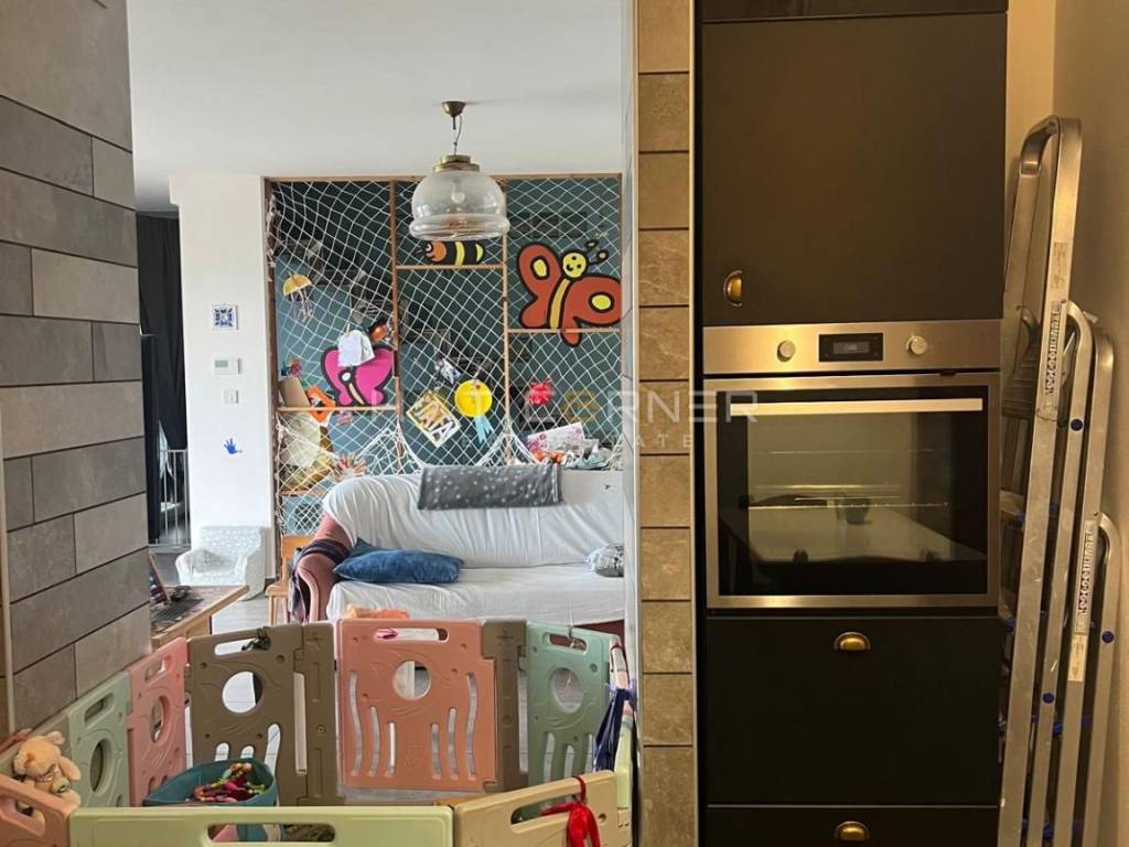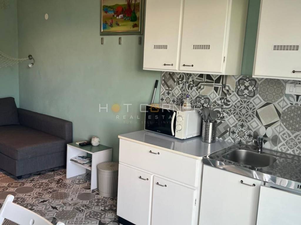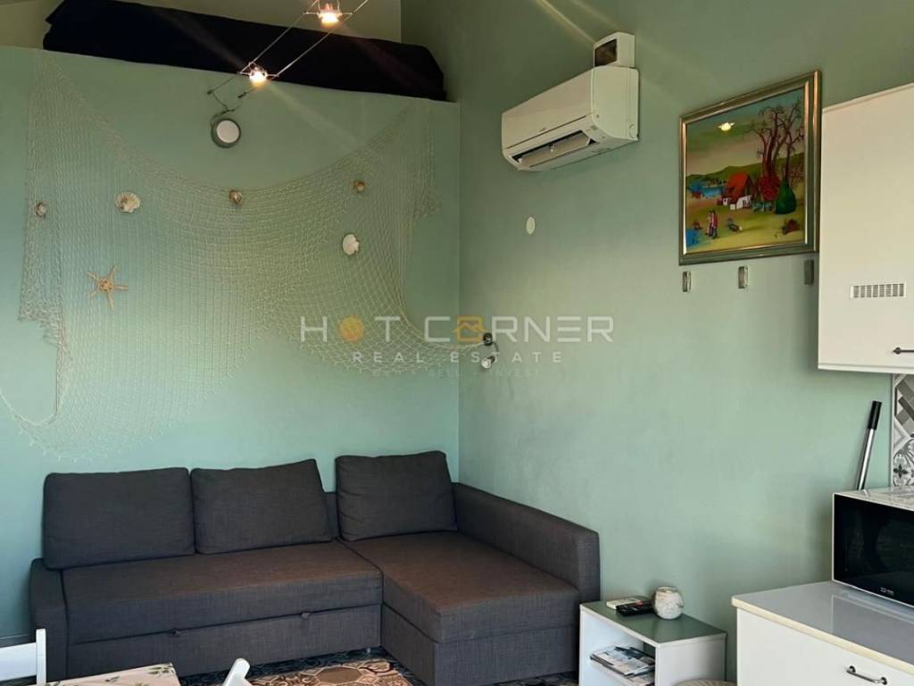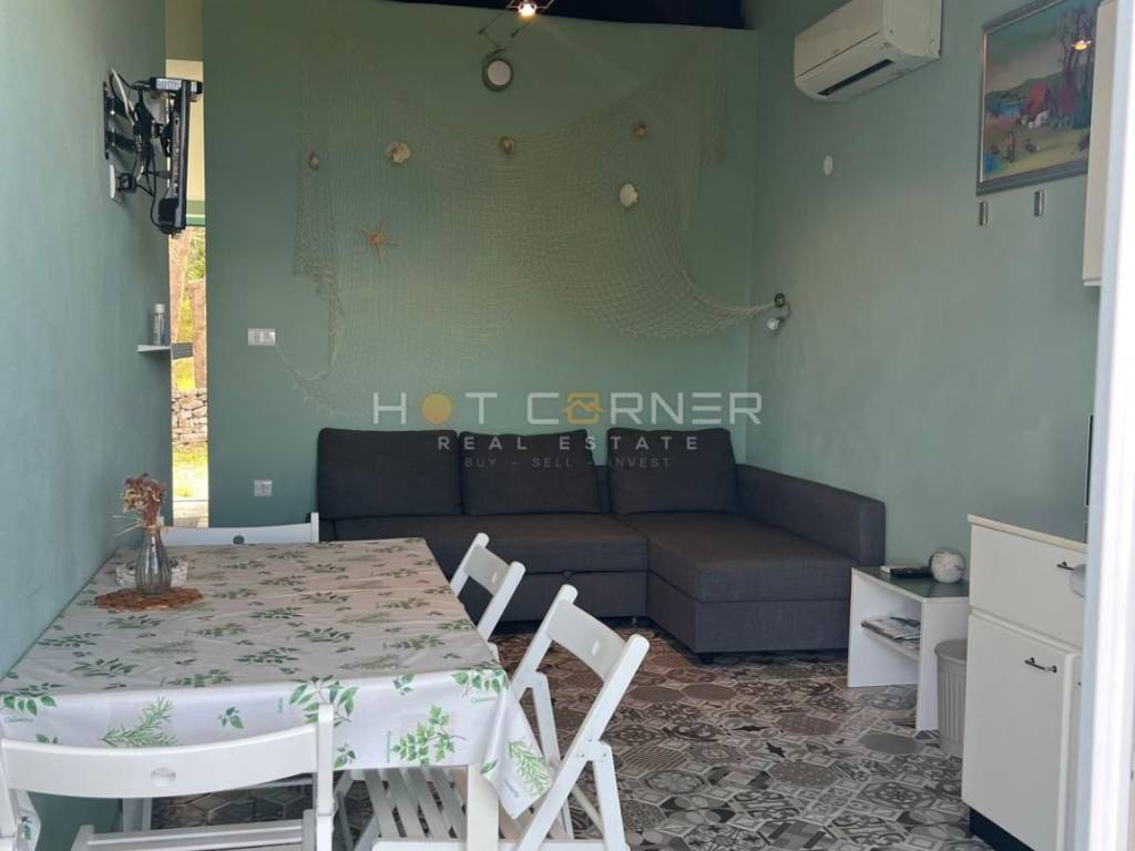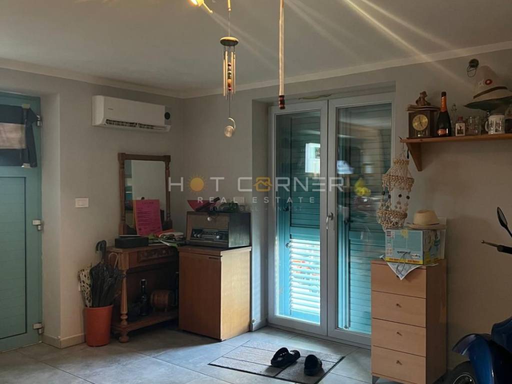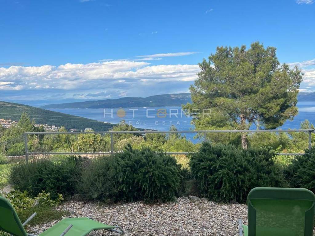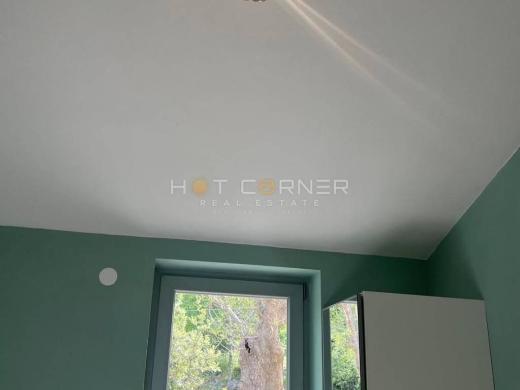 Das Haus ist durchdacht in drei Einheiten aufgeteilt. Im Erdgeschoss befindet sich ein großzügiger Gesellschaftsbereich mit Kamin für Winterabende sowie eine Garage, die bereits alle Installationen besitzt, um in ein zusätzliches Studio-Apartment umgewandelt zu werden. Im ersten und zweiten Stock erstreckt sich eine komfortable Maisonette-Wohnung, deren Balkone das Panorama der Kvarner Bucht voll ausschöpfen, während auf der Rückseite zwei komplett ausgestattete Apartments von 35 m² und 40 m² diskret untergebracht sind, bereit für Gäste und für einen gesicherten Jahreserlös von rund 12 000 €.