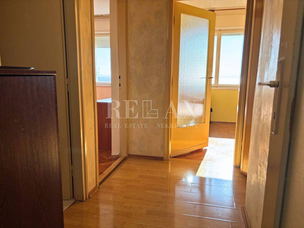 In attraktiver Lage in Rijeka, im Stadtteil Belveder, steht eine Dreizimmerwohnung mit einer Gesamtwohnfläche von 70,02 m² zum Verkauf, die einen außergewöhnlichen Panoramablick auf die Kvarner Bucht und die Inseln bietet. Die Wohnung befindet sich in einem Mehrparteienhaus aus dem Jahr 1968 und liegt auf der Südostseite, was den ganzen Tag über für reichlich Tageslicht und einen ungehinderten Meerblick aus allen Schlafzimmern und dem Wohnzimmer sorgt.