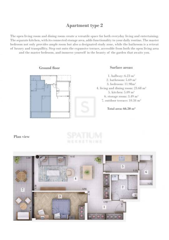 KANFANAR, Wir freuen uns, Ihnen diese schöne, geräumige und sonnige Einzimmerwohnung im Erdgeschoss mit einer Fläche von 66,50 m². anzubieten.