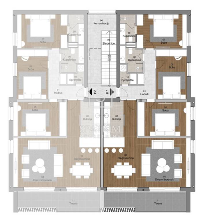 LABIN, wir bieten eine luxuriöse Penthouse-Wohnung mit drei Schlafzimmern in einer Stadtvilla mit Meerblick zum Verkauf an. Die Wohnung befindet sich in ruhiger und attraktiver Lage, nur wenige Gehminuten vom Stadtzentrum entfernt, umgeben von Grünflächen und niedrigen Wohngebäuden. Es handelt sich um einen modernen Neubau mit insgesamt acht Wohnungen, der sich harmonisch in die Umgebung einfügt. Die Wohnung besteht aus einem großzügigen Wohnzimmer mit Küche und Essbereich, zwei Badezimmern, drei Schlafzimmern, einem Abstellraum und einer überdachten Terrasse mit freiem Blick auf das Meer. Die Beheizung und Kühlung erfolgt über Inverter-Klimaanlagen. Die Immobilie wird von einer juristischen Person verkauft, die Mehrwertsteuer ist im Preis inbegriffen, und es fällt keine Grunderwerbssteuer an.