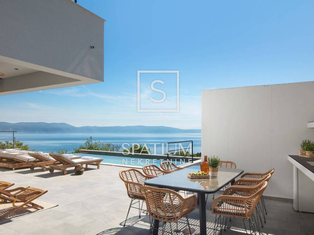 In Labin bieten wir ein Einfamilienhaus mit Swimmingpool und Panoramablick auf das Meer an.