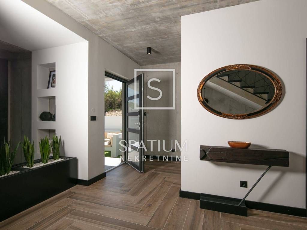 Die Villa ist in Stahlbetonbauweise mit hoher Widerstandsfähigkeit und Sicherheit errichtet. Die Dachfläche ist als Flachdach konzipiert und für die Installation von Photovoltaikmodulen vorbereitet, was Energieeffizienz und Nachhaltigkeit gewährleistet.