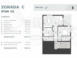 FAŽANA, zum Verkauf steht eine moderne Wohnung im ersten Stock eines neuen Wohngebäudes, die eine perfekte Kombination aus Komfort und Funktionalität bietet. Die Wohnung überzeugt mit hochwertiger Ausstattung wie Fußbodenheizung im Badezimmer, erstklassigen Keramikfliesen sowie Badausstattung namhafter Hersteller. Französische PVC-Fenster mit Rollläden und Insektenschutz sorgen für Helligkeit und Energieeffizienz, während die Sicherheitstür mit hervorragender Schalldämmung Ruhe und Sicherheit garantiert. Wohnungen in den oberen Etagen verfügen über einen Abstellraum im Erdgeschoss des Gebäudes sowie über einen Parkplatz mit Vorbereitung für eine Ladestation für Elektrofahrzeuge. Der Investor bietet den Käufern zudem die Möglichkeit, Bodenbeläge, verschiedene Keramik- und Bademodelle sowie zusätzliche Anpassungen und Erweiterungen nach Wunsch zu wählen. Diese Immobilie ist ideal für alle, die hohe Bauqualität, Praktikabilität und Privatsphäre in unmittelbarer Nähe zum Meer suchen.