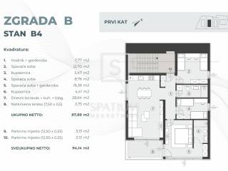 FAŽANA, zum Verkauf steht eine moderne Wohnung im ersten Stock eines neuen Wohngebäudes, die eine perfekte Kombination aus Komfort und Funktionalität bietet. Die Wohnung überzeugt mit hochwertiger Ausstattung wie Fußbodenheizung im Badezimmer, erstklassigen Keramikfliesen sowie Badausstattung namhafter Hersteller. Französische PVC-Fenster mit Rollläden und Insektenschutz sorgen für Helligkeit und Energieeffizienz, während die Sicherheitstür mit hervorragender Schalldämmung Ruhe und Sicherheit garantiert. Wohnungen in den oberen Etagen verfügen über einen Abstellraum im Erdgeschoss des Gebäudes sowie über einen Parkplatz mit Vorbereitung für eine Ladestation für Elektrofahrzeuge. Der Investor bietet den Käufern zudem die Möglichkeit, Bodenbeläge, verschiedene Keramik- und Bademodelle sowie zusätzliche Anpassungen und Erweiterungen nach Wunsch zu wählen. Diese Immobilie ist ideal für alle, die hohe Bauqualität, Praktikabilität und Privatsphäre in unmittelbarer Nähe zum Meer suchen.